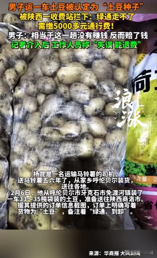 陕西商洛,货车司机杨先生从内蒙古运30多吨土豆前往此地,本应走绿色通道免通行费,下高速时却被收费站拦下,要求缴纳5711元。收费站称杨先生拉的是土豆种子而非食用土豆,尽管杨先生订单标注明确且据理力争,仍无奈缴费。收货人不认这笔费用,杨先生崩溃,决定不卸货讨说法,联系媒体后,记者核实土豆并非种子,在协调下收费站退费。 杨先生,在网上接了个订单,要拉30多吨土豆去陕西商洛。 这活对杨先生来说,就跟吃饭喝水一样简单,他麻溜地装好货,日夜兼程,两天就快到目的地了。 眼瞅着就要下高速了,可麻烦事来了。 收费站的工作人员把杨先生拦下了,说要收5711元通行费。杨先生当时就懵了,啥情况啊这是? 他赶紧拿出订单,指着上面的“土豆”俩字说:我这订单上写得清清楚楚,拉的是土豆,走绿色通道该免通行费啊,咋还要收钱呢? 收费站的工作人员一口咬定杨先生拉的是土豆种子,杨先生气得直跳脚,这工作人员也太不讲理了吧! 就凭包装上那品种、产地,就断定是种子,这不是睁眼说瞎话嘛!杨先生据理力争,可收费站的工作人员就跟没听见似的,坚持要收费。 杨先生没办法,只能无奈地交了钱。这钱交了,杨先生心里更不是滋味了,他想着,这钱不能就这么白交,得找收货人说说。 可当他联系收货人的时候,收货人却不认这笔费用,说这钱不该他出。 杨先生这下可崩溃了,这钱没了,货还没卸,这可咋整? 他决定不卸货了,就在收费站这讨个说法。他一边联系媒体,一边跟收费站的工作人员理论。这收费站的工作人根本不搭理杨先生。 媒体记者来了之后,仔细看了看杨先生的订单,上面确实写着“土豆”,没有“种子”字样。 记者又联系了批发商,批发商也证实,杨先生拉的就是食用土豆,根本不是种子。 这证据一摆出来,收费站的工作人员可就没话说了。 这时候,收费站的态度来了个一百八十度大转弯,开始找各种借口,说可能是工作人员看错了,或者是信息沟通不畅啥的。 可这借口也太牵强了吧,杨先生可不买账。在记者的协调下,收费站最终同意退费。 收费站也太随意了吧,就这么轻易地判定是土豆种子,这不是耽误事嘛! 收费站的工作人员,他们为什么就一口咬定是土豆种子呢?是业务不熟练,还是故意刁难呢? 收费站的行为,是否越权? 收费站仅凭包装上品种、产地断定土豆为种子,这涉嫌违反行政合理性原则。 行政机关作出行政行为,应当客观、适度、符合理性,依据《行政处罚法》规定,行政处罚必须以事实为依据,与违法行为的事实、性质、情节以及社会危害程度相当。 收费站未充分调查核实就收费,属于事实认定不清,越权行使自由裁量权。 如果杨先生起诉收费站,会如何判决呢? 大概率会支持杨先生诉求,因为收费站收费依据不足,杨先生订单明确写土豆,且符合绿通政策。 依据《行政诉讼法》规定,行政行为证据不足的,法院判决撤销或者部分撤销,并可以判决被告重新作出行政行为,收费站应退费并承担诉讼费用。 绿通政策本为惠民,却被如此执行,实在不该。 杨先生拉货是为了给收货人送货,如果收费,这通行费也本来就不该杨先生出。他却不认这笔费用,做生意得讲诚信,不能这么耍赖。 绿通政策是好政策,可在执行过程中,却出现了这么多问题,怎么才能让这政策更好地落实呢?怎么才能避免类似的事情再次发生呢? 对此,你怎么看?你觉得这收费站的做法合理吗?这收货人该不该出这笔费用呢?这绿通政策又该怎么完善呢?