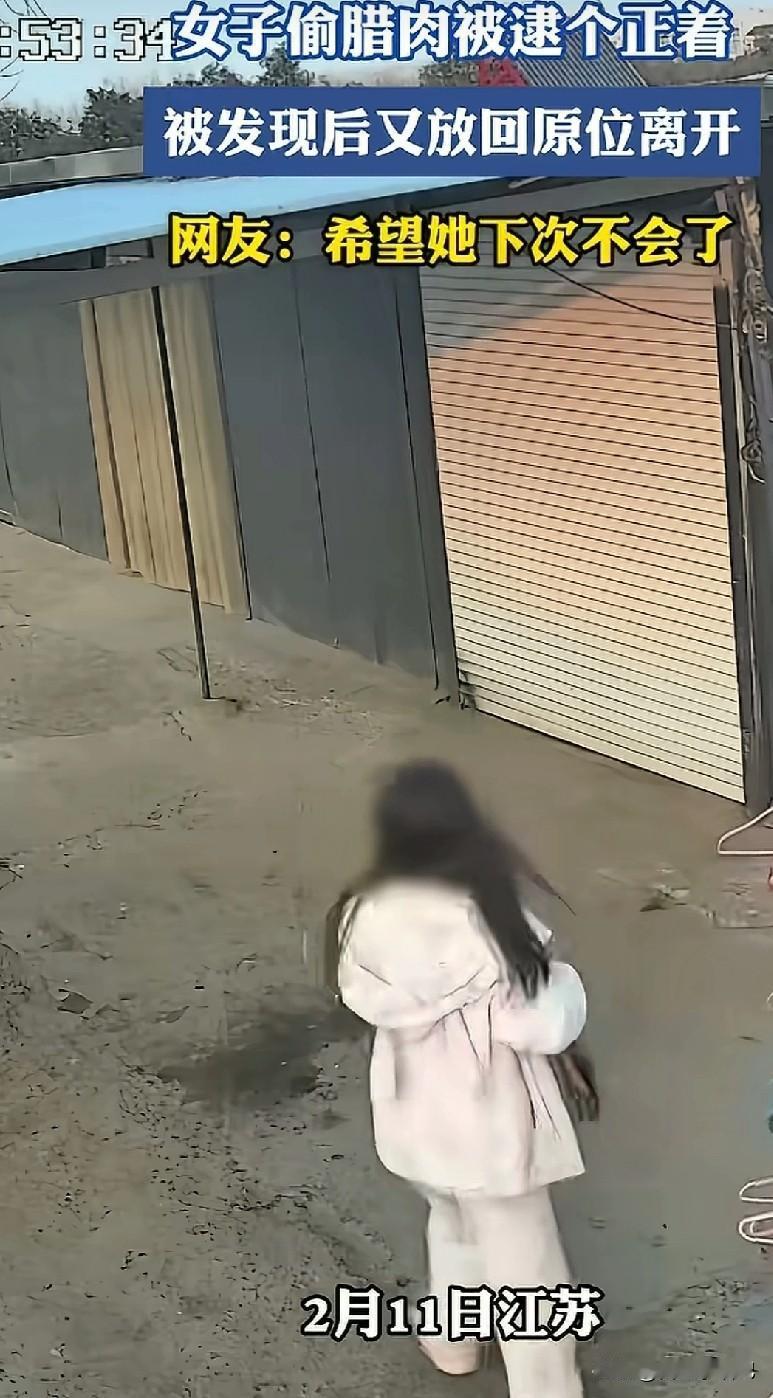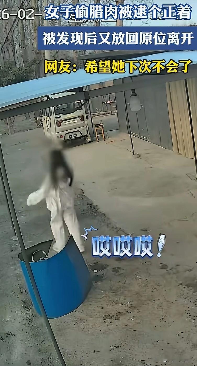 真的又好笑又尴尬!在江苏的某个乡镇,一回家过年的年轻女孩路过一户人家,看到屋檐下挂得满满当当的腊肉,瞬间就盯上了。 她左右来回张望,确认四下无人,偷偷摸摸伸手拽下一块,拔腿就想跑。可万万没想到,运气差到了极点。房主正好骑着车从外面回来,把这一幕看得一清二楚! 房主当场霸气的一声嘶吼:“你干嘛,敢偷我东西!”刚才还偷偷摸摸的女孩,瞬间秒变乖巧,立马乖乖把腊肉放了回去,还一本正经、有问有答地狡辩:“我没干嘛,我拿着玩……” 这一幕真是让人哭笑不得,偷吃被抓现行,理由都编得这么离谱。虽说腊肉香,但真不能伸手,一伸手就被抓,尴尬到原地抠出三室一厅! 也提醒大家:不是自己的东西千万别碰,哪怕只是“拿着玩”,也别做这种丢人的事呀! (图片来自网络视频)