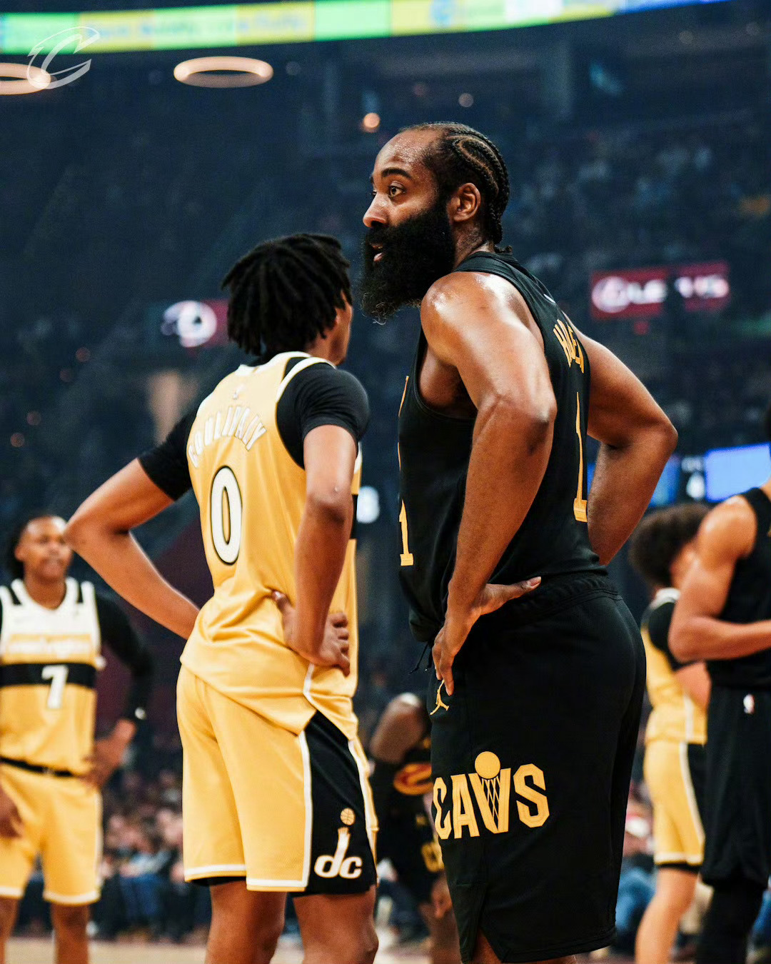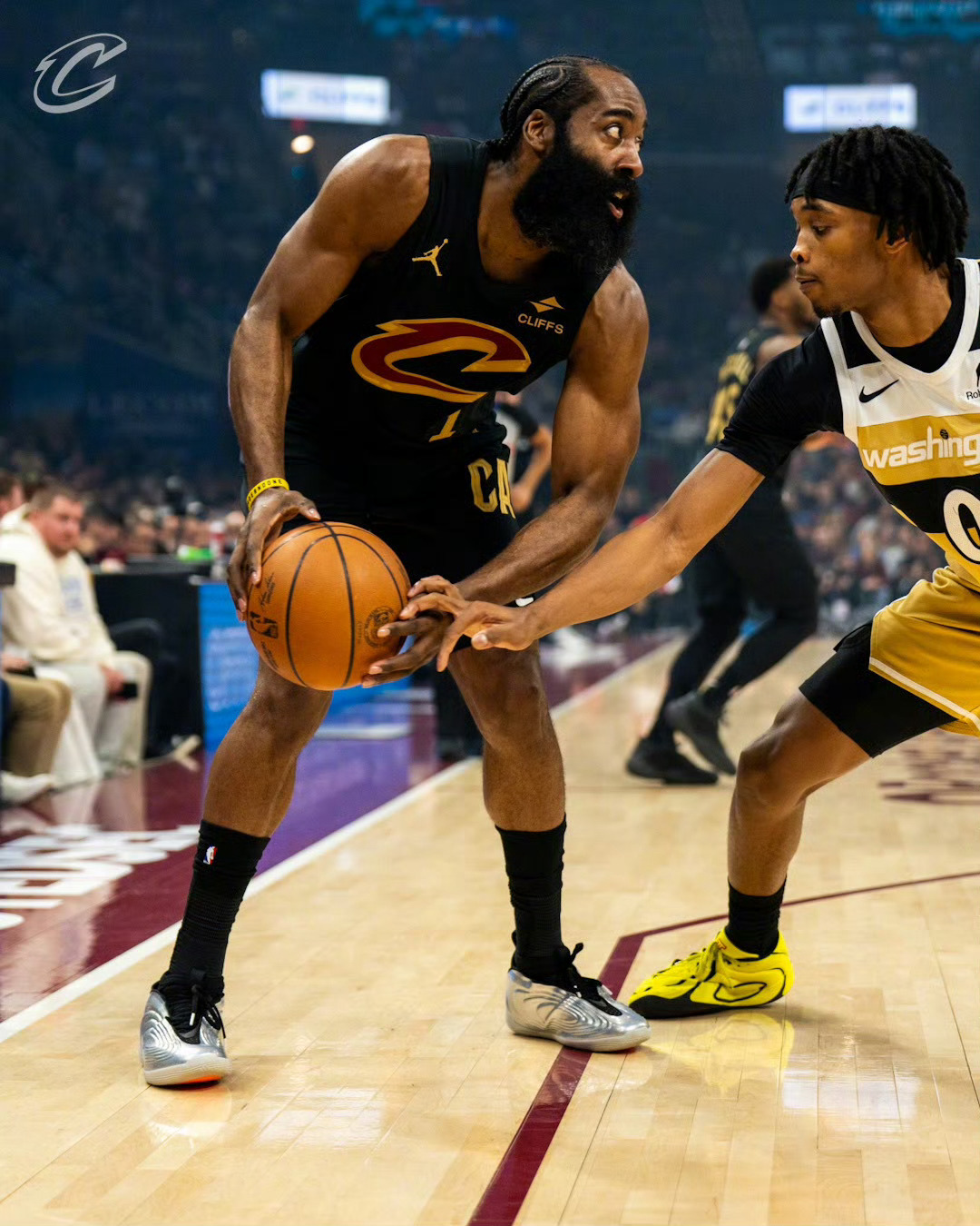 哈登骑士主场首秀轻松写意,全场出战28分钟仅出手4次拿下13分11助攻4篮板。