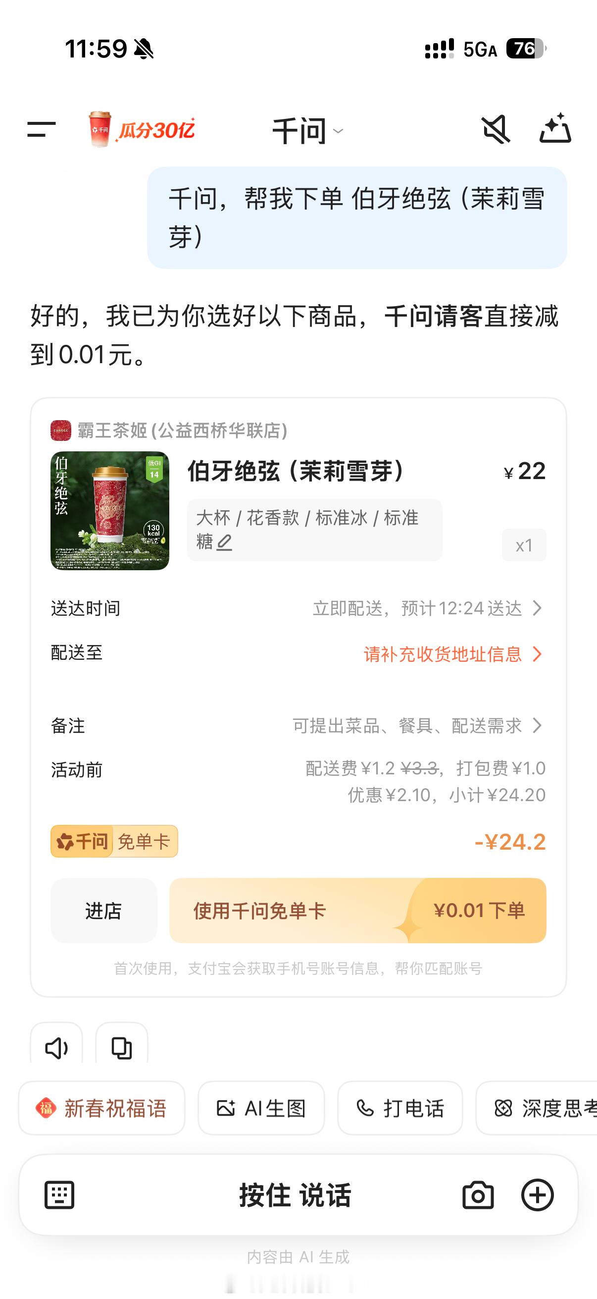 千问说买得开心过两天见 25元通用免单卡直接承包奶茶零食,谁能不心动?