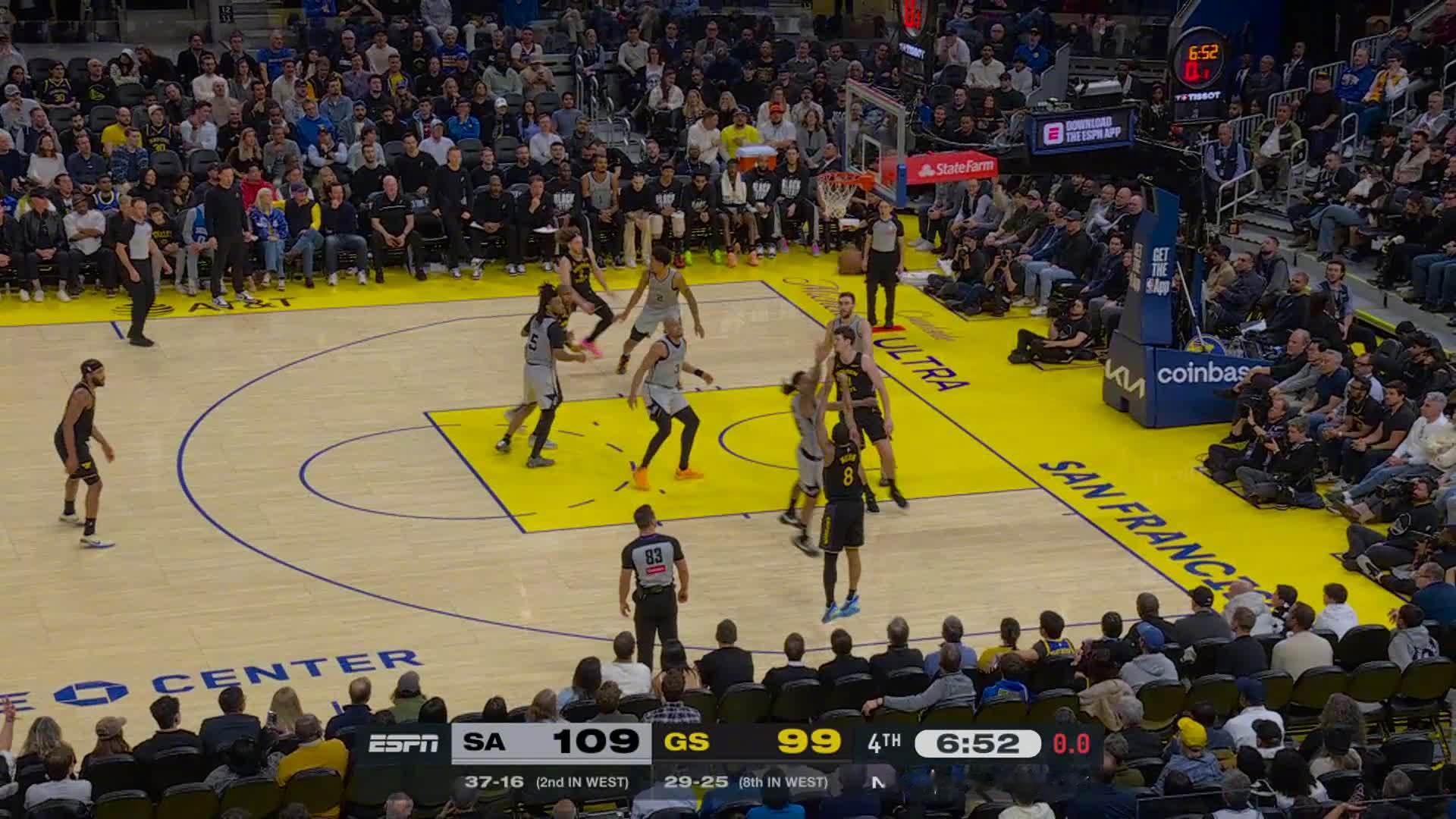 梅尔顿本场比赛第五个三分☔️勇士104:114马刺。马刺vs勇士