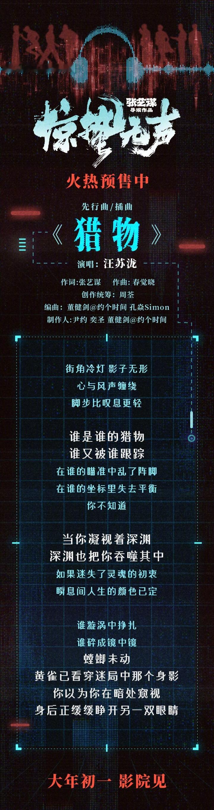 汪苏泷给《惊蛰无声》唱的《猎物》终于来了!一开头就是一股强劲的音乐袭来,直接代入国安小组追捕猎物的视角。易烊千玺和朱一龙在街头穿梭寻找着什么,宋佳在监控室锁定黑夜里的身影,不知道谁是谁的猎手,谁是谁的猎物🫢伴随着汪苏泷逐渐高亢的歌声“当你凝视着深渊,深渊也把你吞噬其中”好像这场巨大的围猎场上,没有人是绝对的掌控者!