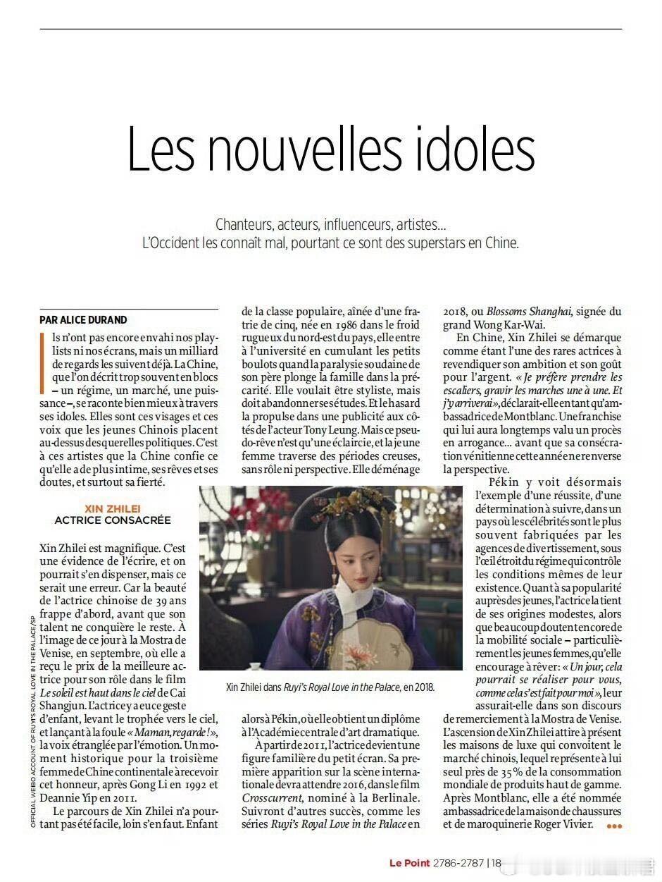 辛芷蕾登国内外顶级杂志含金量 辛芷蕾拿下《Le Point》与《人民画报》双封面,海外影响力与国家级认可兼备,年度女演员荣誉加持,全方位展现超强实力。