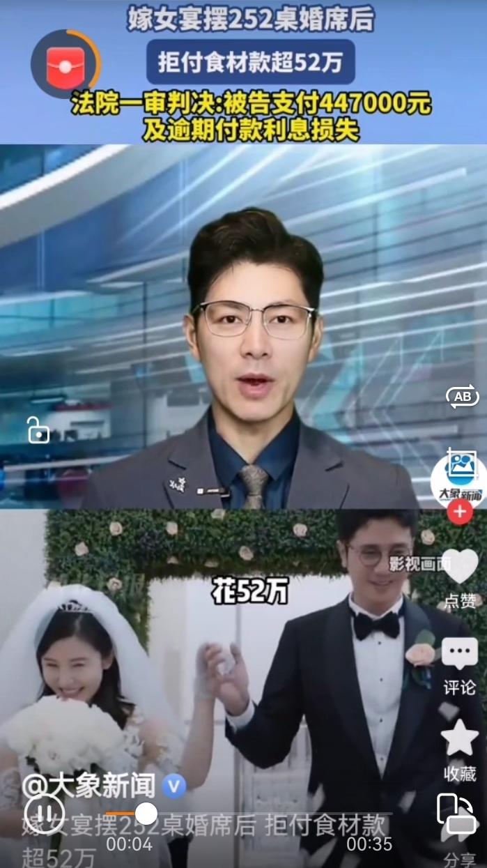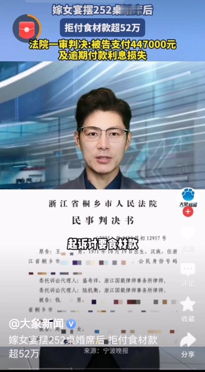 钱老板的“豪放”婚宴,竟变成了“吃醋”官司? 一场看似盛大的婚礼,竟差点变成一场“吃瓜”大戏。浙江某地,钱老板为了女儿大办婚宴,花了52万,摆了整整252桌,场面堪比电影场景。可是,谁曾想,宴席还没散完,钱老板就开始嫌弃食材贵,怀疑采购商暗藏“回扣”,一纸拒付!这下好,原本的“喜事”变成了“官司”。 事情的起因很简单:婚宴用的食材,供货商王老板追讨52万多元货款。可是,钱老板却以“没有按规定验收”“费用无法核算”等理由,只认可了27万。双方争执不休,矛盾逐渐激化。法院一审判决,结合当地宴席的用量和行情,判令钱老板在十天内支付王老板44万7千元的货款和利息。 你以为这就完了?不,故事还在继续。细细一想,背后暗藏着一场“金钱与信任”的较量。表面上是“吃”的账,实际上折射出婚礼背后的人情世故:谁说婚宴只是吃喝那么简单?它更是一场“面子战”和“信任考验”。 这起官司告诉我们:大手笔的婚宴,花得再豪,也别忘了“诚信”二字。否则,不仅是账上的数字翻来覆去,更可能让“喜事”变“官司”。 而对于我们普通人来说,也许应该思考:那份“盛大”背后,是否夹杂着“斤斤计较”的阴影?毕竟,家庭和诚信才是最值得珍惜的“婚礼礼尚往来”。 所以,下次遇到“买菜贵了”或者“账单不对”,别一味“硬刚”,多点理解和信任,说不定,幸福的“宴席”还能吃得更久、更甜!