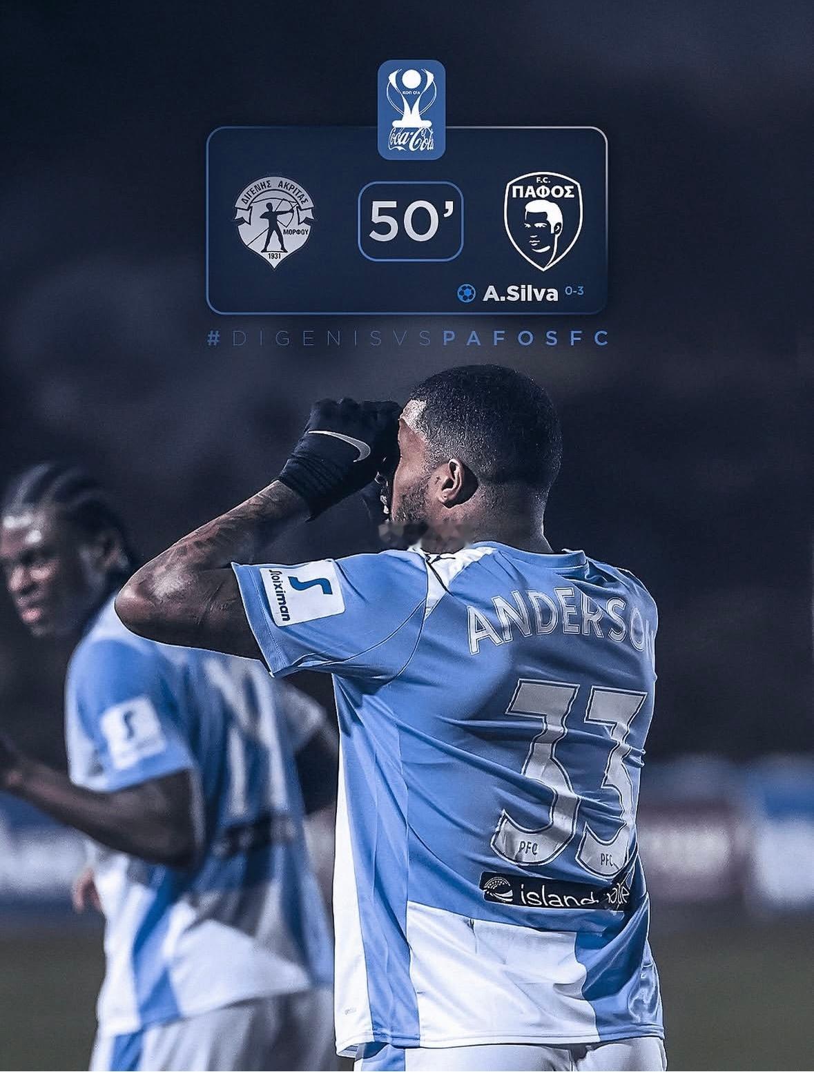 昨晚结束🔚的塞浦路斯杯1/4杯决赛帕福斯3:0迪加尼斯的比赛中前国安外援安德森席尔瓦梅开二度。目前安席是帕福斯队内最佳射手。