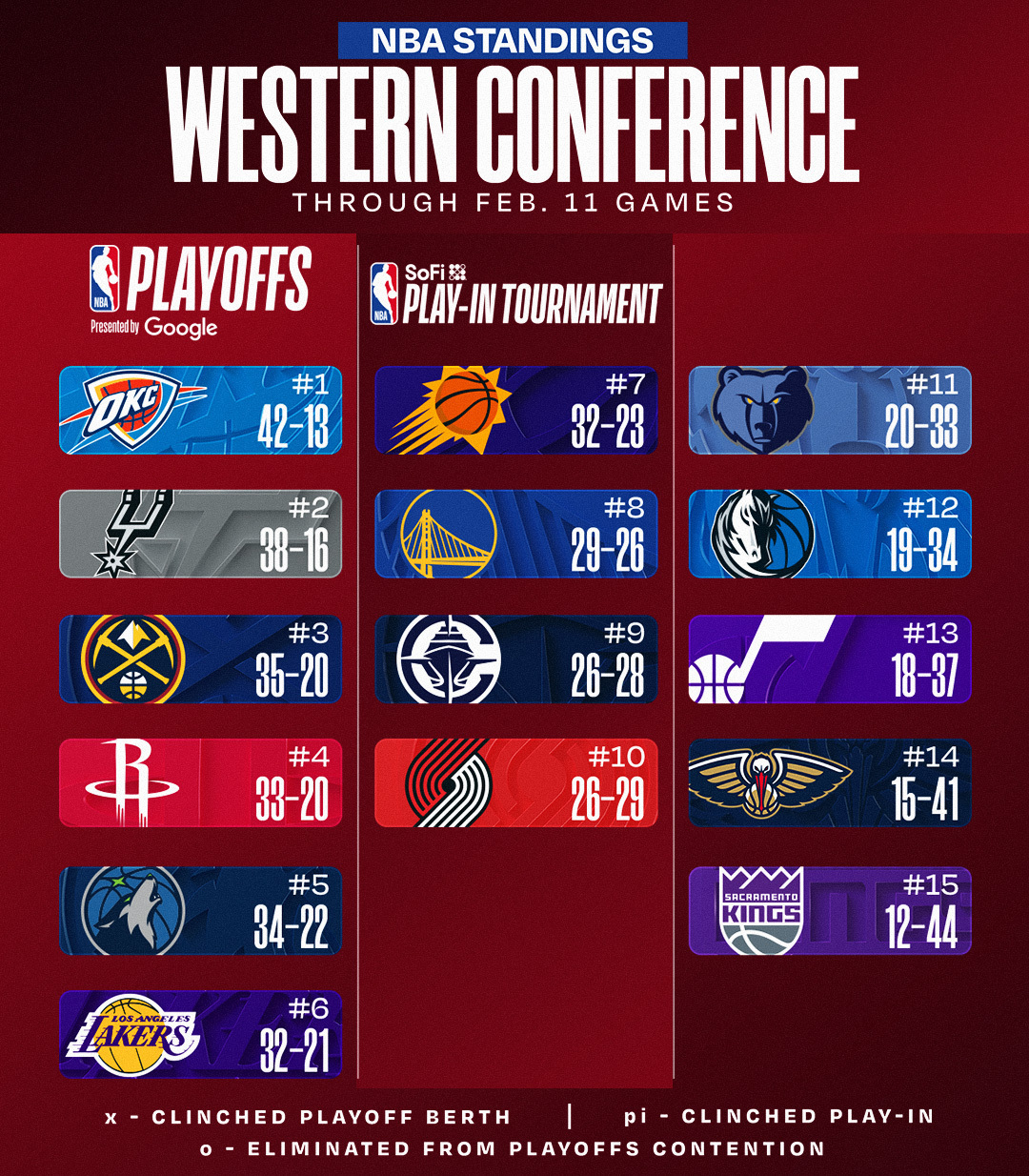 今日赛后排名更新。NBA
