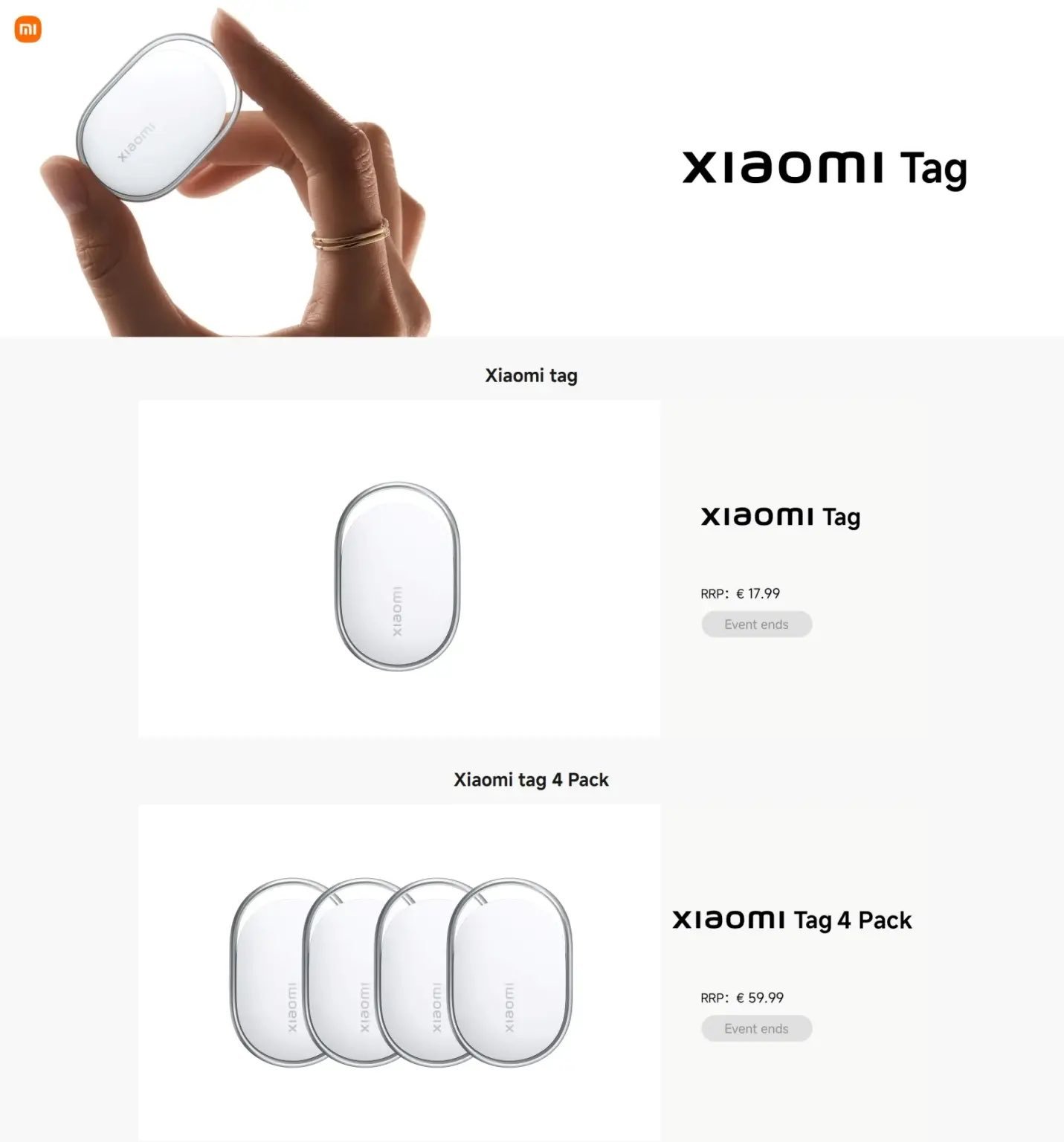 小米Tag在海外上市了,卖17.99欧,约147RMB有四件装卖,只需要59.9