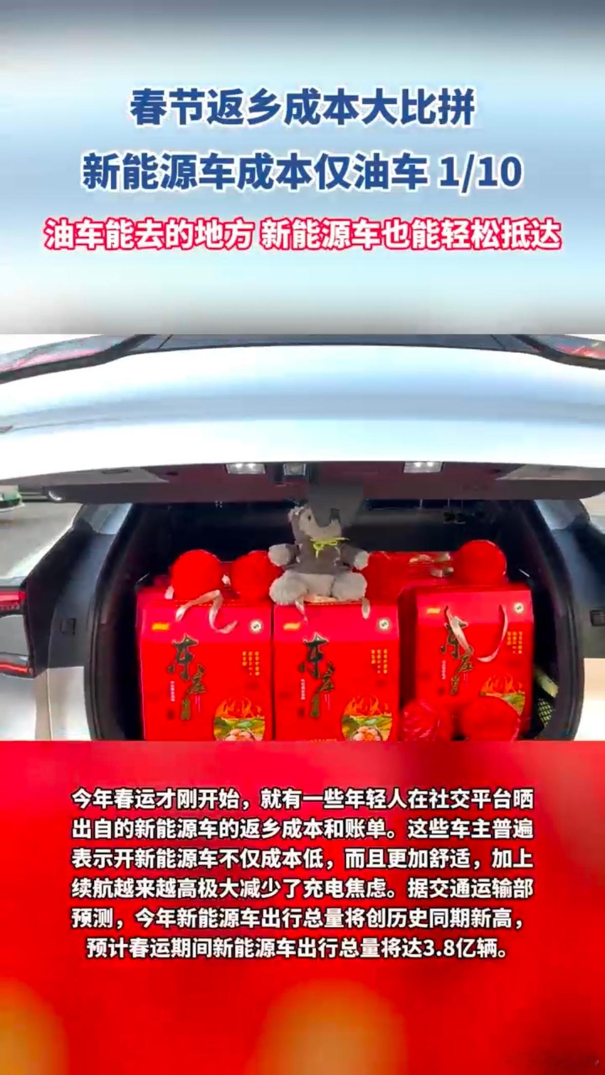 小鹏G7超级增程车主算了一笔账:去年开油车回老家花了一千多,今年开G7只花了一百多,费用相当于只有去年的10%。之所以能做到这么省,靠的是百公里电耗仅14kWh、馈电油耗低至5.9L,加92号汽油就能跑。更关键的是综合续航高达1704km,全球最长,极大减少了充电焦虑。省钱之外,智能舒适的驾乘体验也让长途返乡更轻松。春节返乡成本仅为油车十分之一开着小鹏回家过年