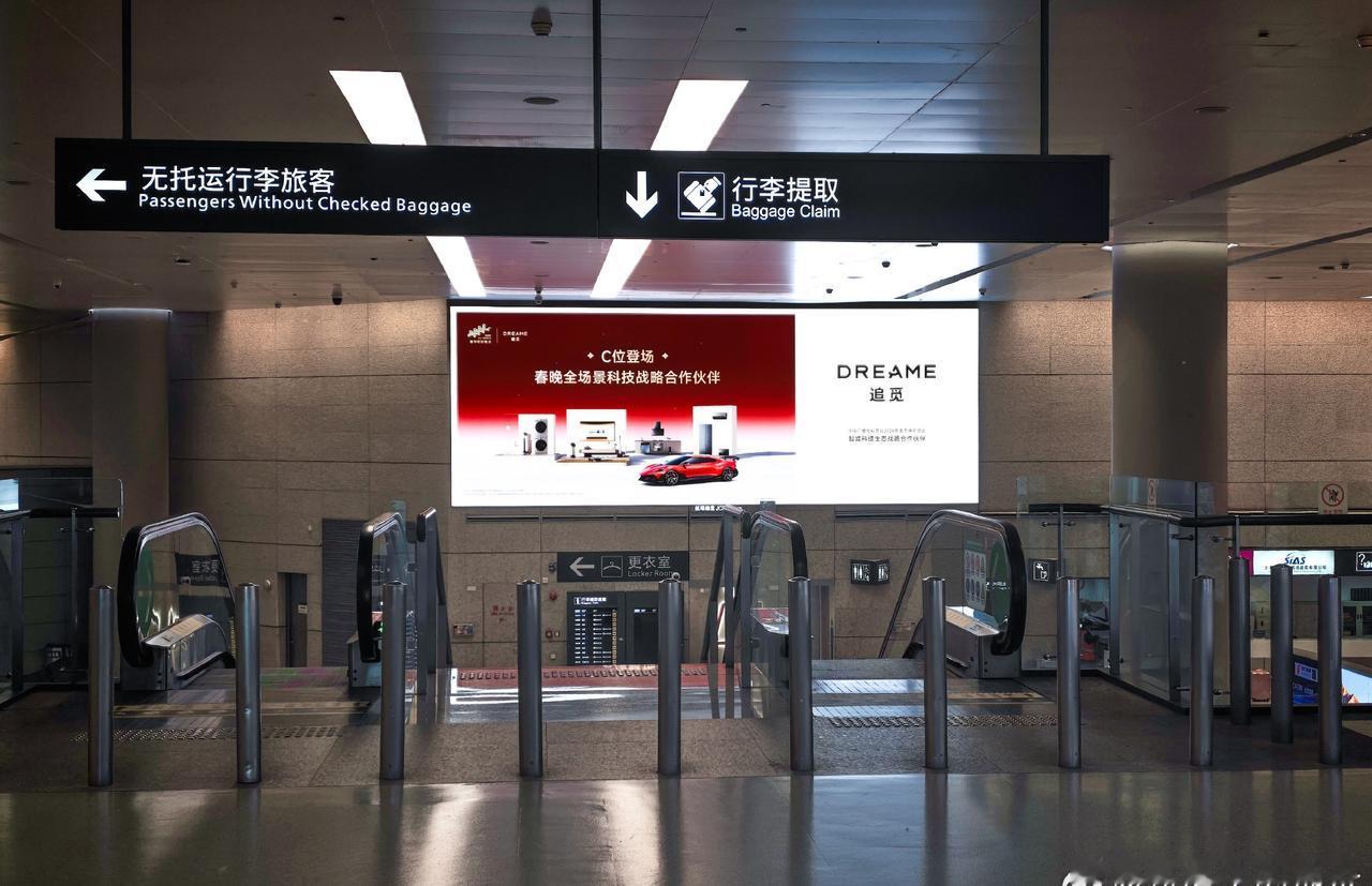 还没到家,年味先在机场拉满了!北京机场新春装饰氛围感十足,再配上科技感满满的大屏