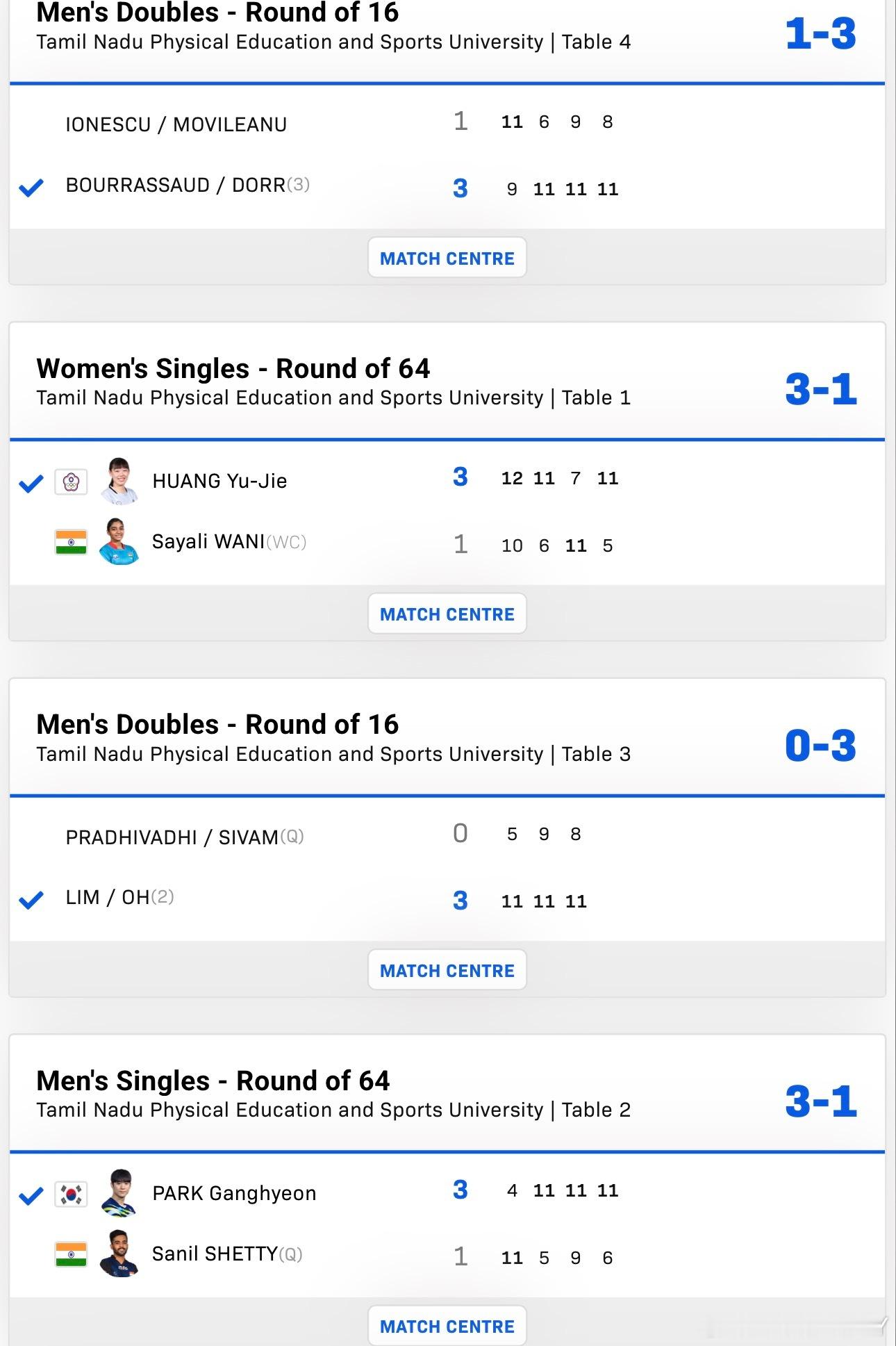 2026wtt金奈球星赛男子双打16-8林钟勋/吴晙诚3-0普拉迪瓦迪/斯瓦姆弗洛里安/多尔3-1莫维利亚努/爱德华