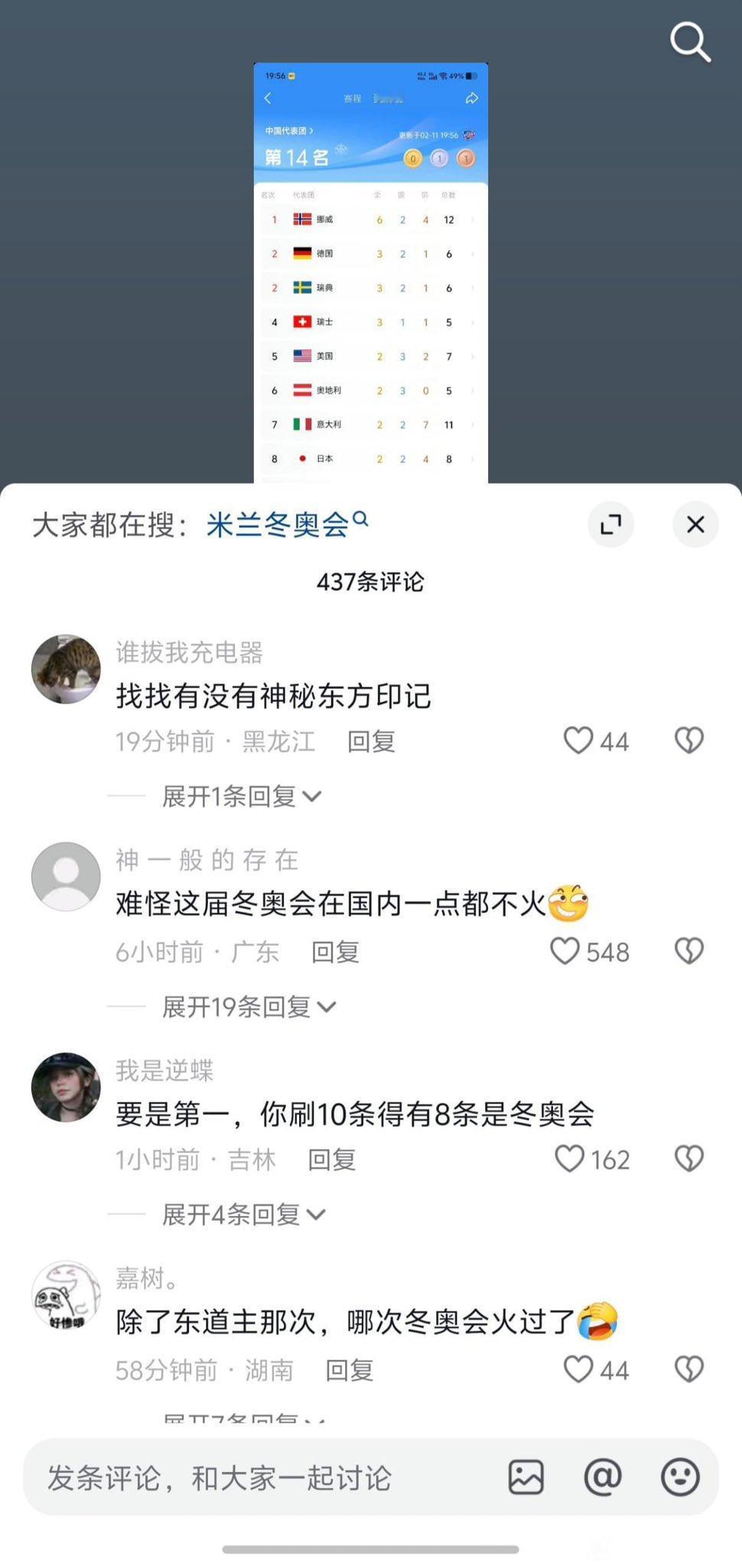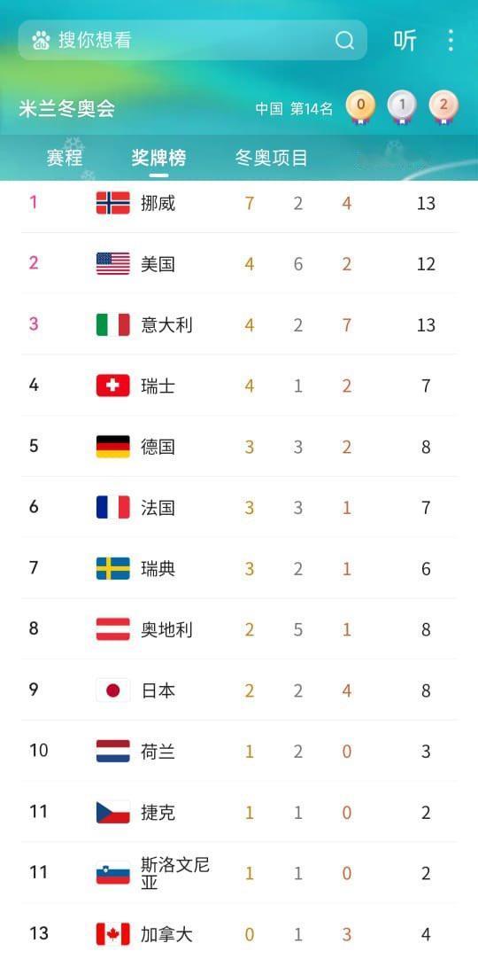 截止2月11日 米兰冬奥会期间 中国队共获得0金1银2铜 未上奖牌榜首页 ~回归自然挺好,实事求是,不急功近利[赞]