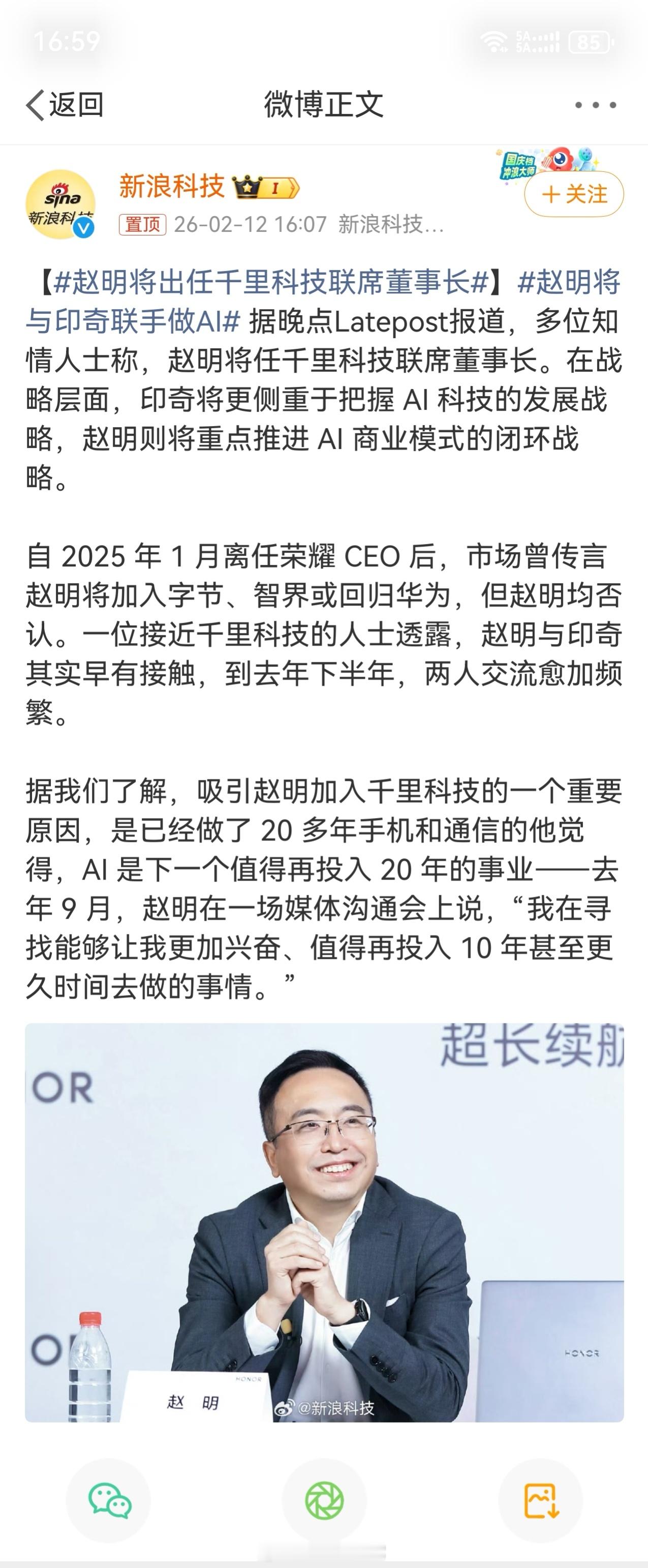 赵明将出任千里科技联席董事长车圈又要更热闹了,至此数码圈最火热的几个人都已经加入汽车圈了!