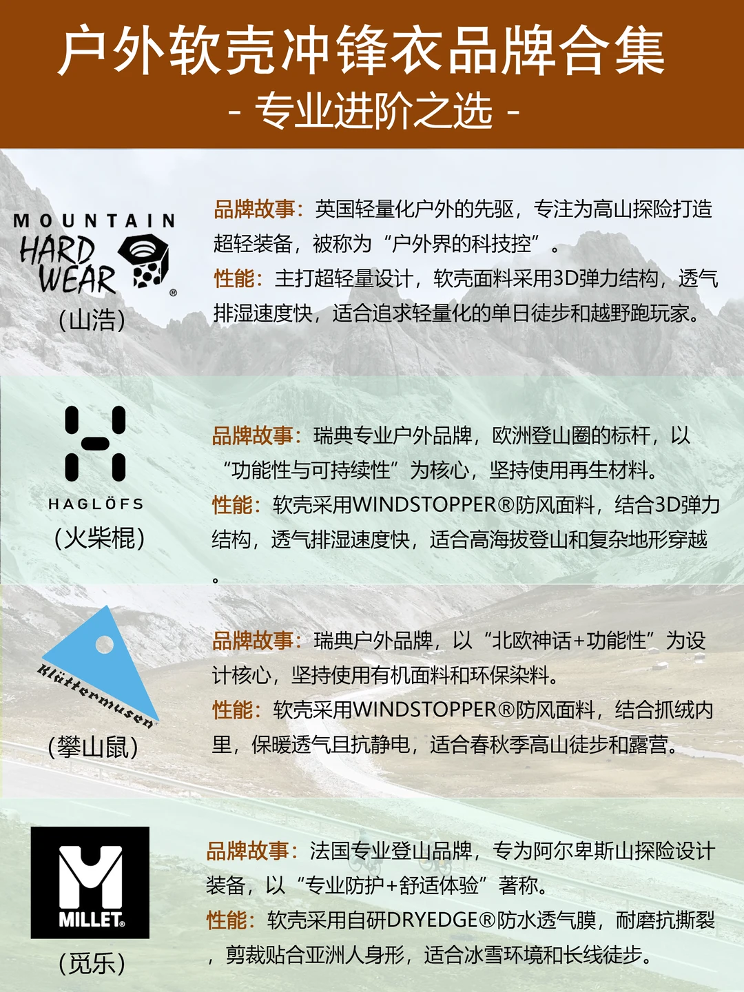 [萌萌哒R]懂户外的都知道,软壳冲锋衣比硬壳冲锋衣更日常、更舒服、更百搭!那么今天就给大家分享11个户外软壳冲锋衣品牌,大家可以根据需求,选择适合自己的款哦~