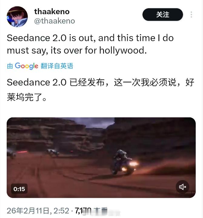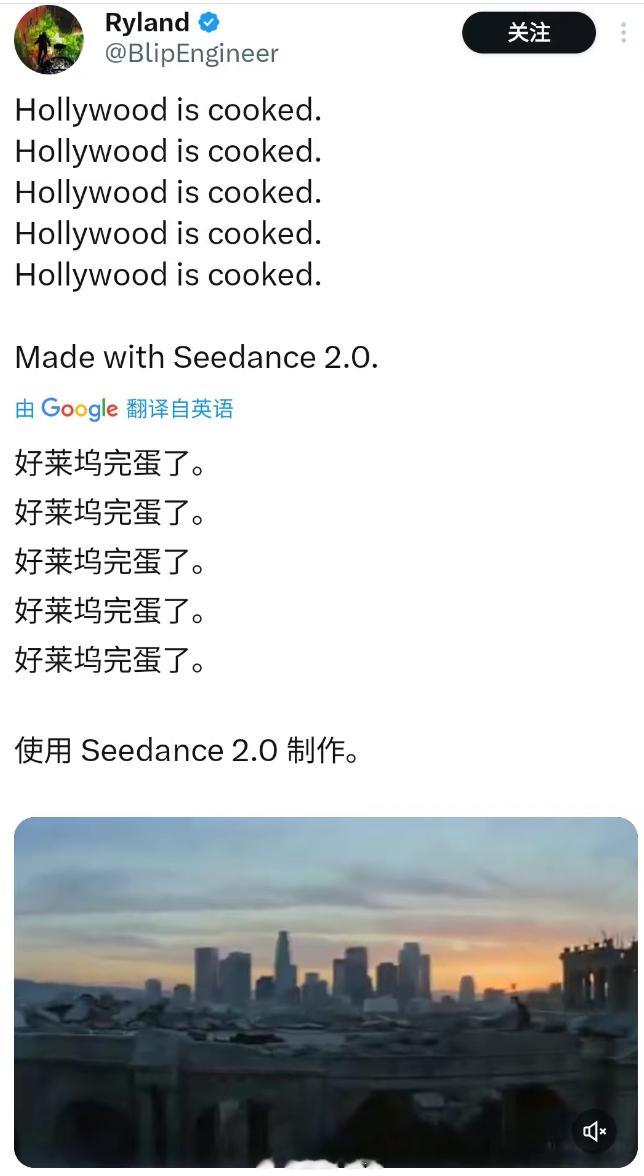 Seedance2.0海外爆火!美国导演:可能会搞垮好莱坞……从Deepseek到Seedance中国AI成了
