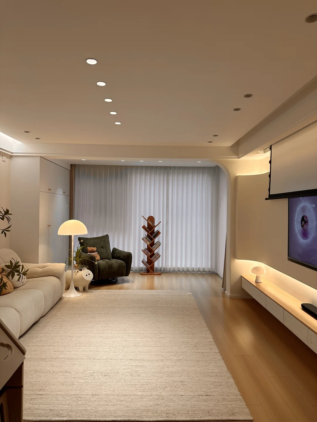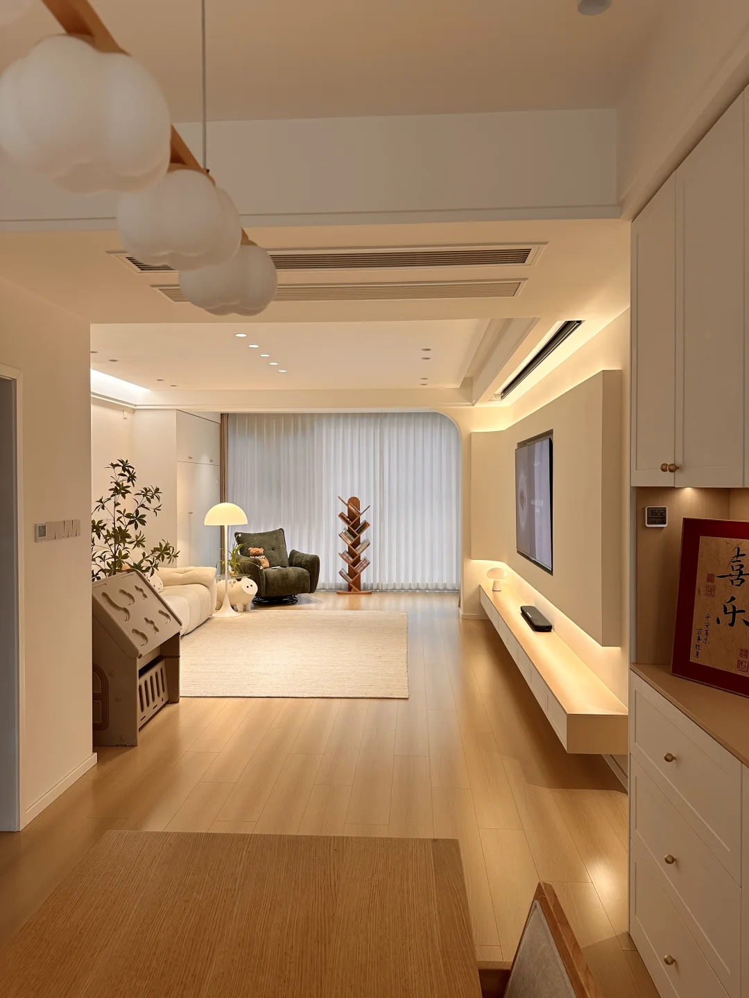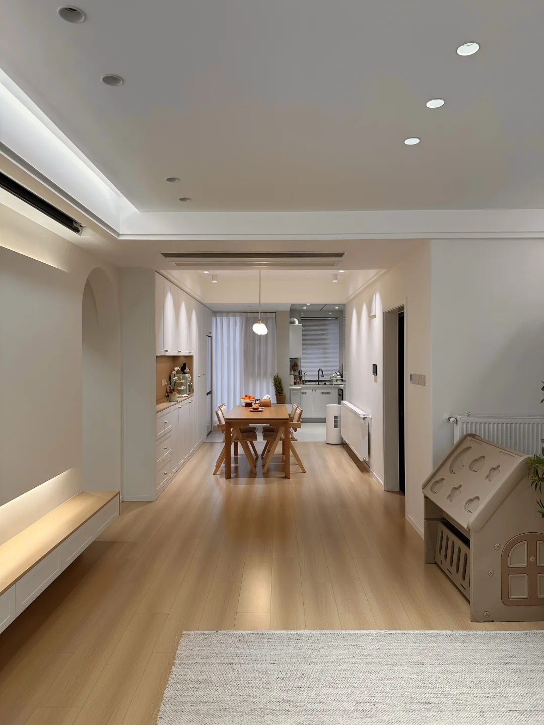 普通人一家三口在小县城的小家,套内108,硬装是花了十五万,全屋木地板通铺,打通阳台后视野开阔又通透~ 客厅无主灯满满的氛围感,奶呼呼的沙发和地毯让我的客厅很好宅,餐厅一整套原木风餐桌椅,搭配温馨的风光,我的小家很温柔~