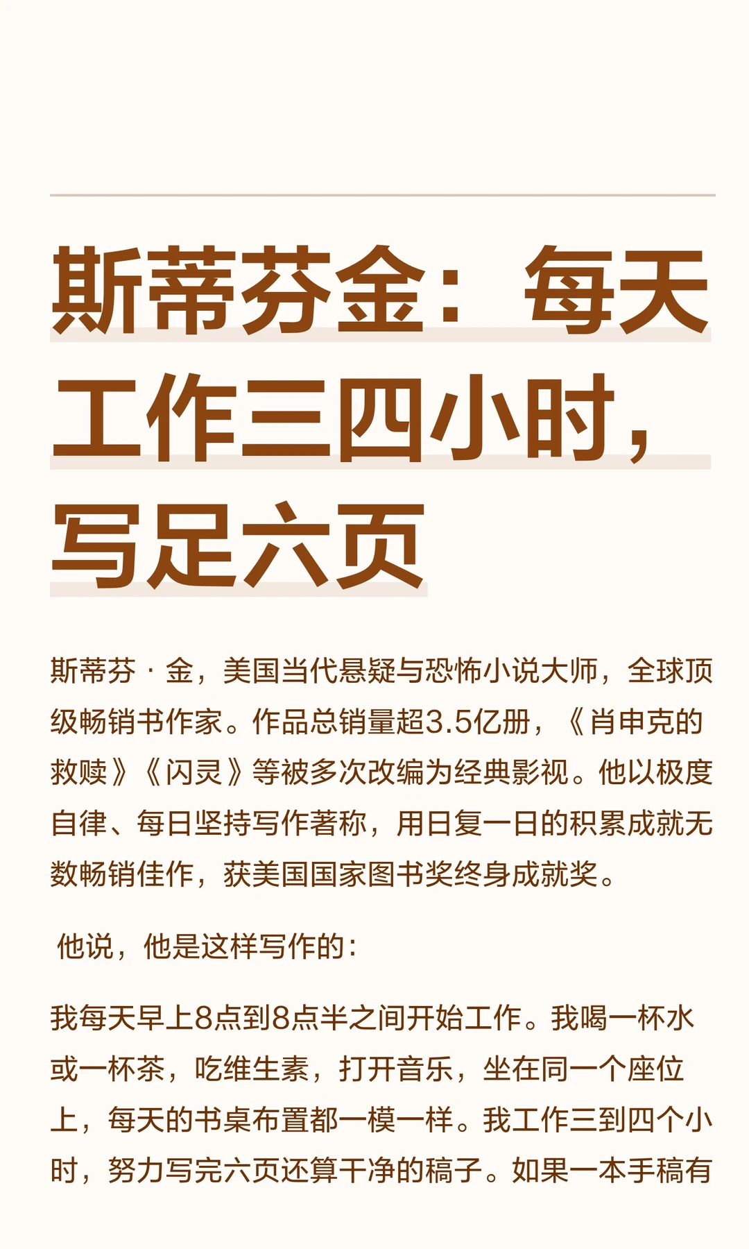 斯蒂芬金:每天工作三四小时,写足六页