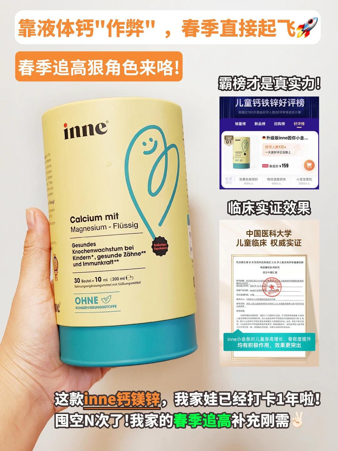 不过选钙剂别瞎买!我家吃的inne钙镁锌也是我挑了好久才定的,已经一年了。身边人问我我都真心推!它没那么花哨,但有中国医大四院的临床研究撑腰,我家娃再也不是早教班的小尾巴了✌🏻