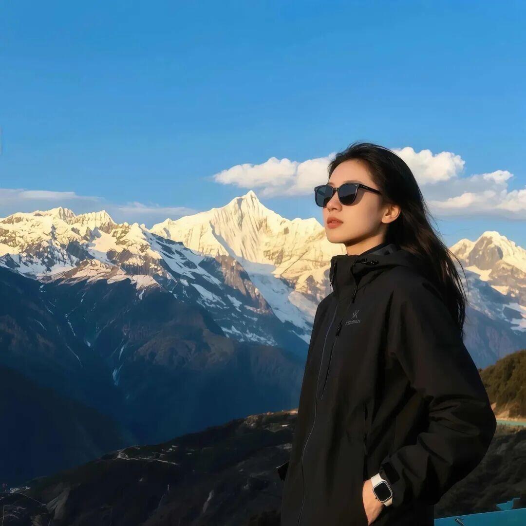 张天爱跟素人合影,胯真的好宽,大宅院似的