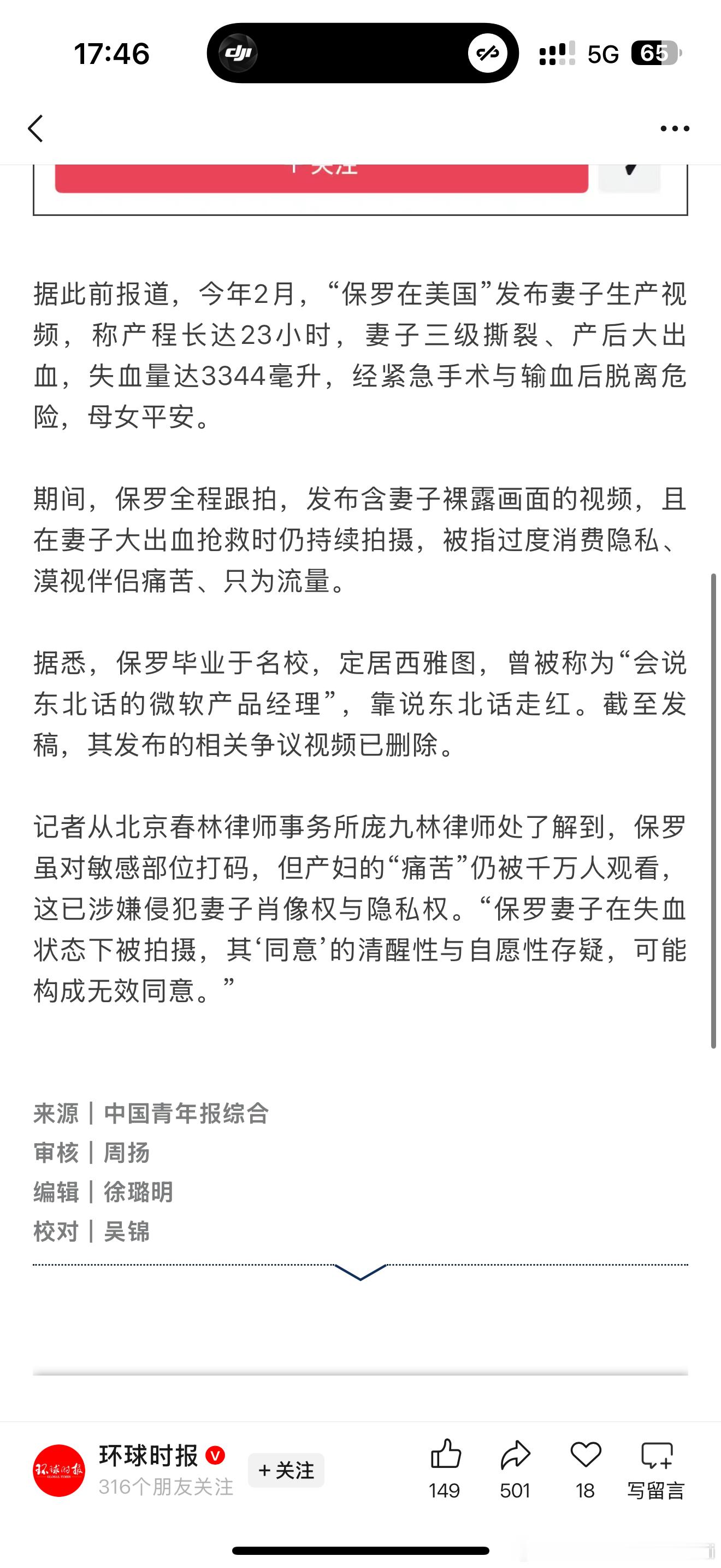 这个瓜好像是我听说拍他妻子非常痛苦的生产过程,大出血出了3000多ml(相当于全身大部分的血都换了一遍)然后中间还穿插了品牌方的尿不湿的广告然后很多网友开始急了批评他们说为了流量啥都拍啥都发,满眼都是对流量的渴望