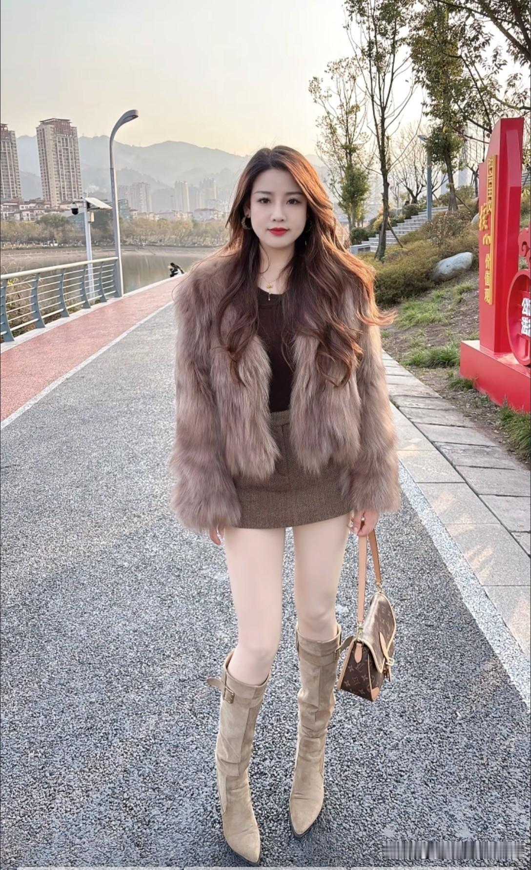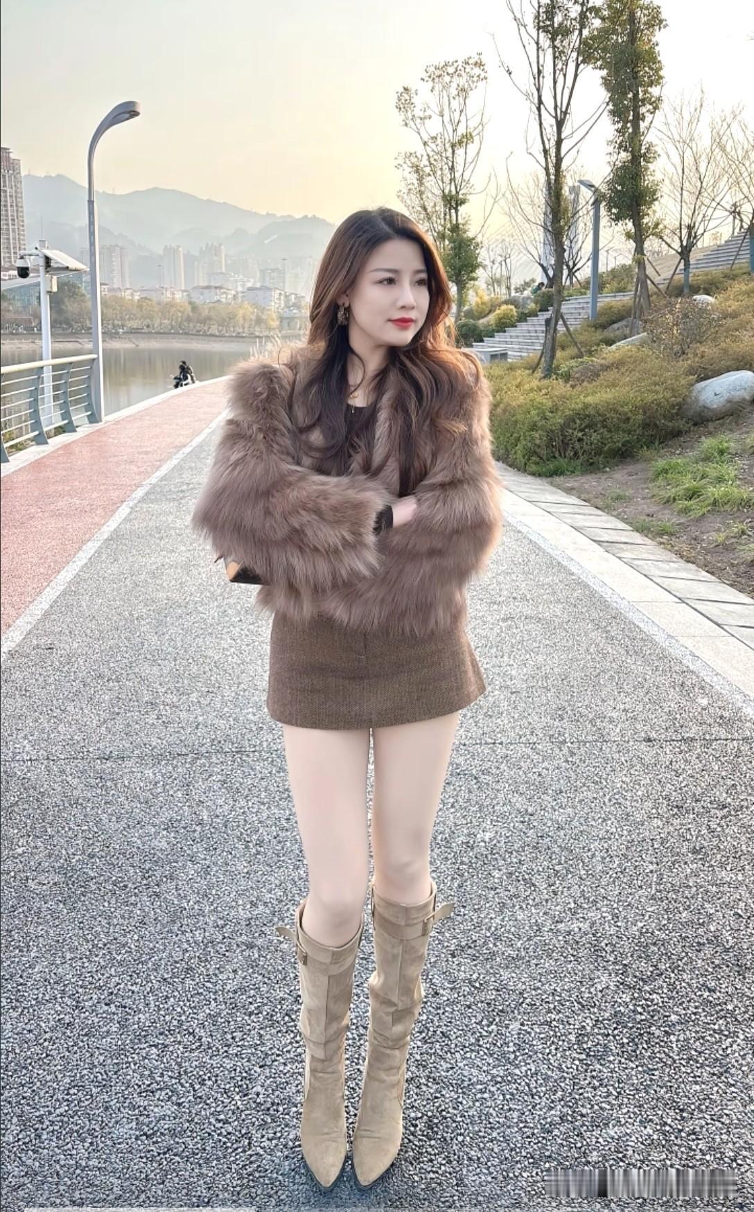 冬日暖阳下,毛绒外套与靴子的完美搭配,尽显时尚与温暖