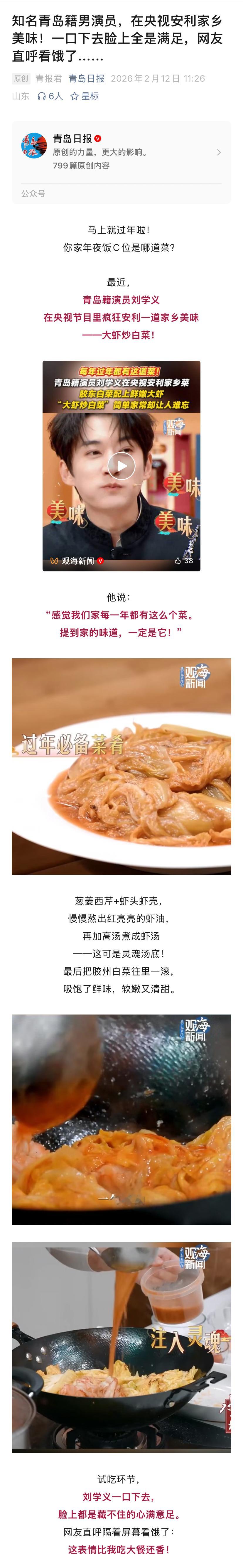 刘学义踏雪寻踪 ❄️刘学义兰香如故 青岛新闻网网页链接青岛日报网页链接观海新闻公主号发布刘学义相关青岛籍演员刘学义在央视节目里疯狂安利一道家乡美味——大虾炒白菜!