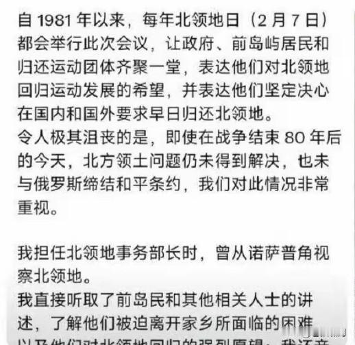 高市发文,要求俄归还“北方四岛”!这是一个新动向。她说俄乌战争以来,日俄关系陷入