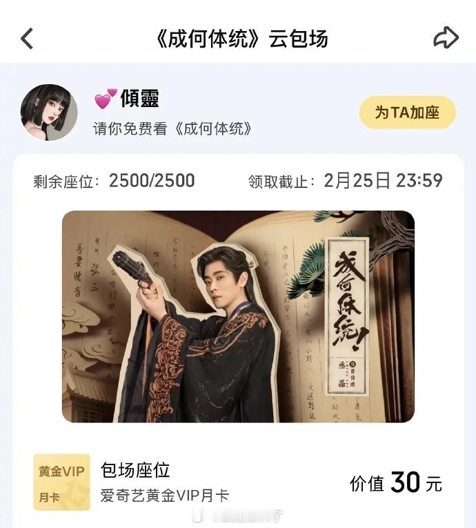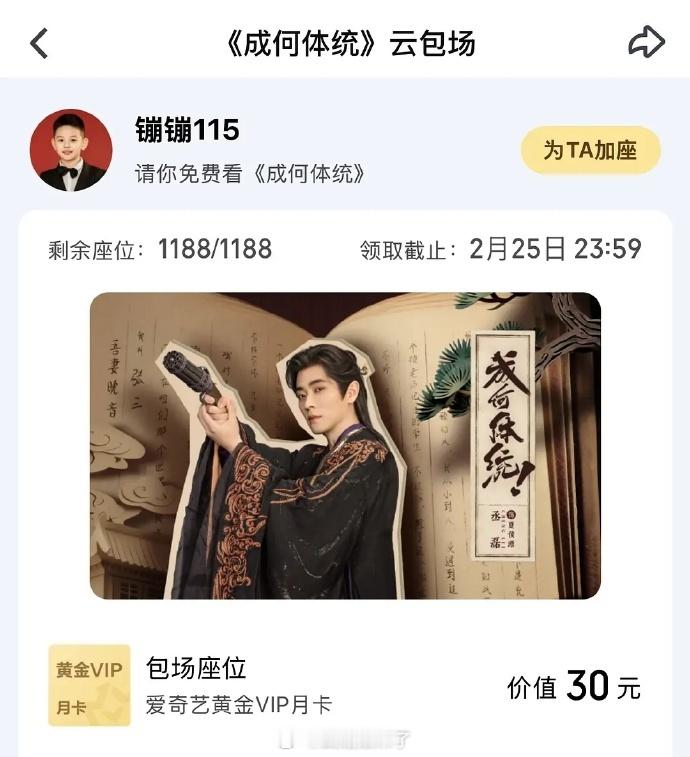 丞磊成何体统云包场加座5500➕座今晚还有直播一起聊剧情越来越好看了一起奔赴这个