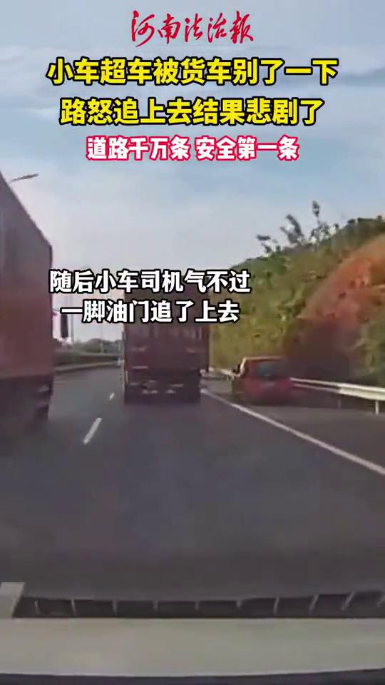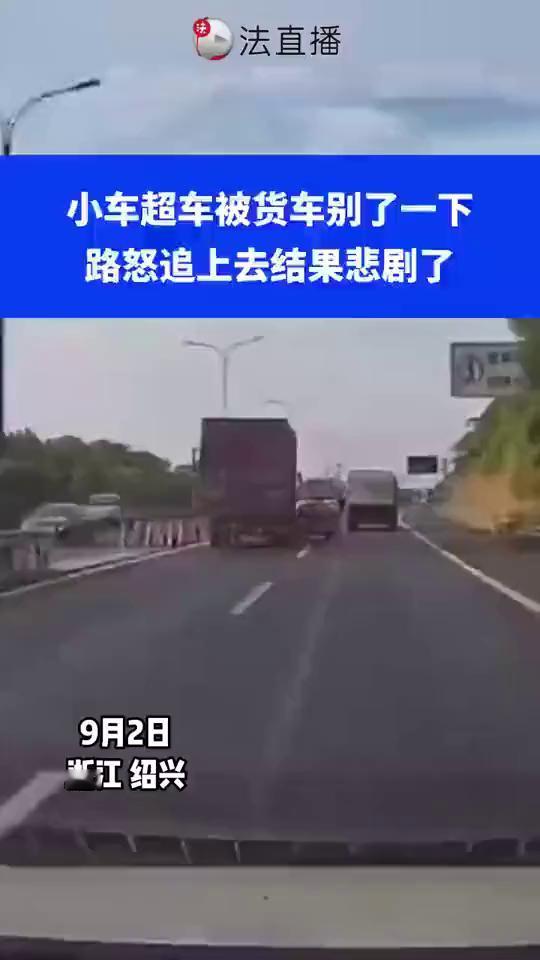 小车超车被货车别了一下,路怒追上去结果悲剧了。 河南法治报。 9月2日,浙江绍兴。道路千万条,安全第一条。小车想要从右侧超车时,大货车也右转变道,右侧出现一辆三轮车,导致小车被迫减速。随后小车司机气不过,一脚油门追了上去。没有超车条件情况下,强行变道超车,结果直接被大货车压了过去。