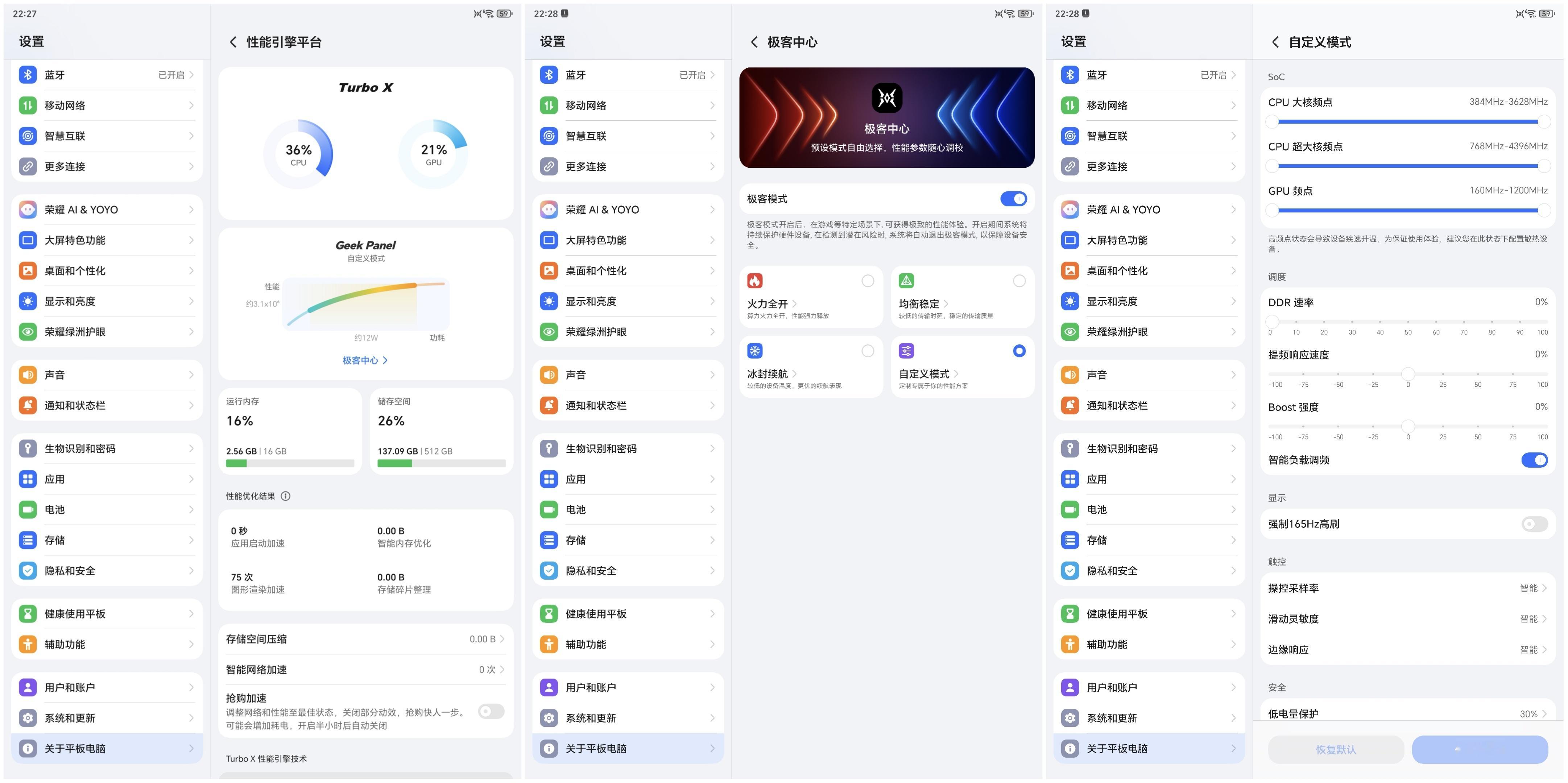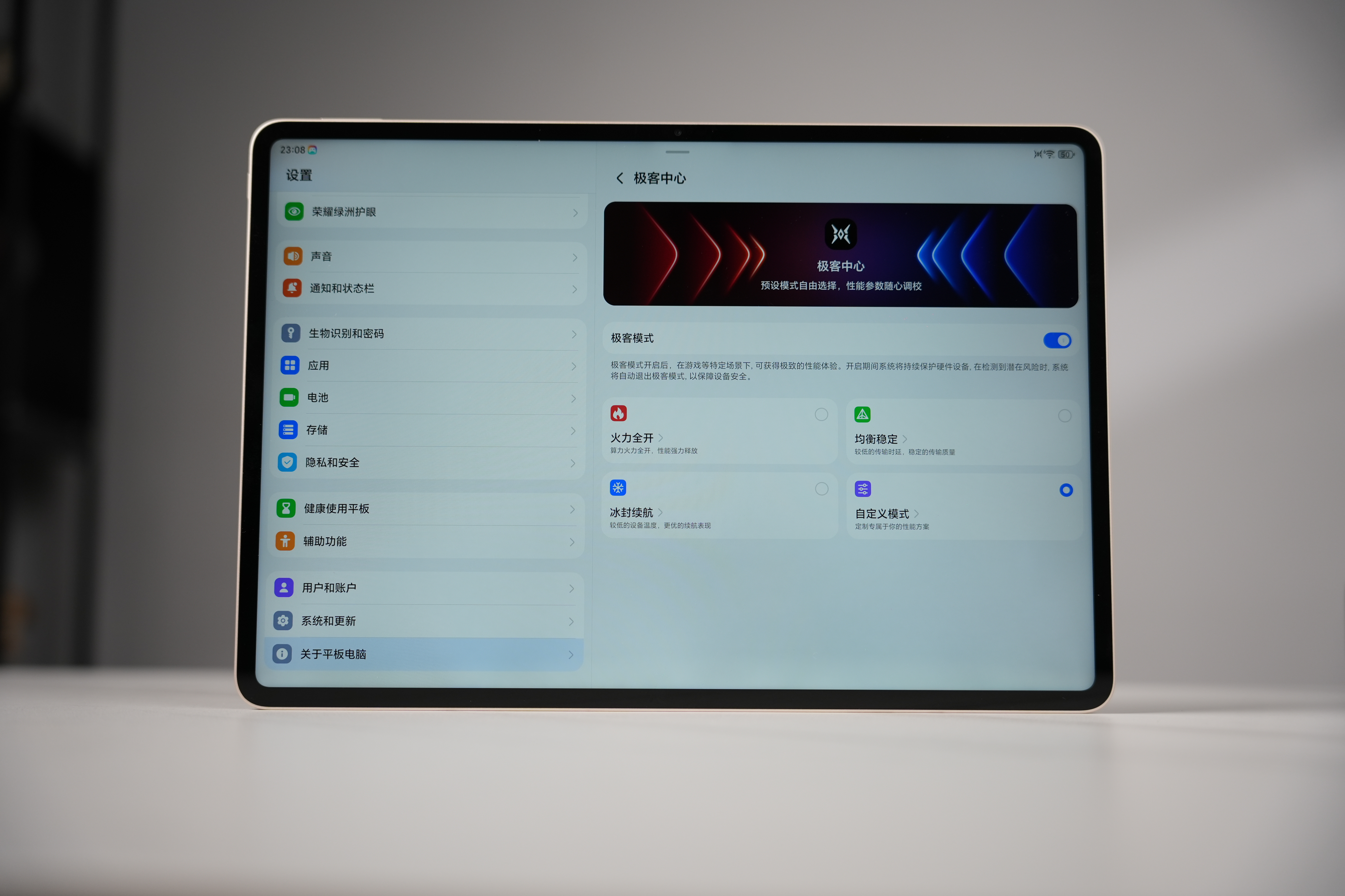 现在荣耀做产品不仅听劝,这整活能力也是不落下风呀!手中常用于打游戏的荣耀MagicPad3Pro 在升级了最新的版本后,开始支持了一个叫做“极客模式”的新功能,这功能最厉害的地方是打开后,可以对平板性能进行自由自主的调节,然后再玩一些游戏时体验会更好,初次体验真有些早期ROOT手机的那种感觉了。