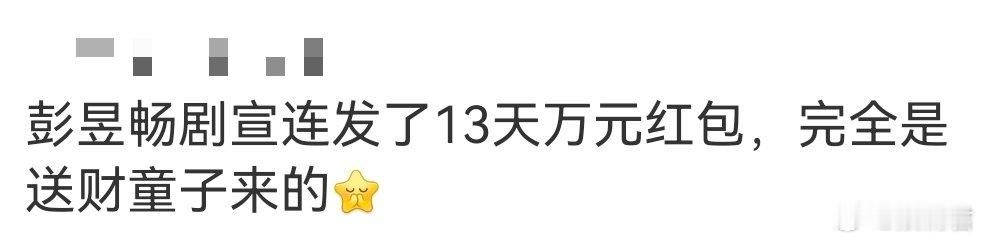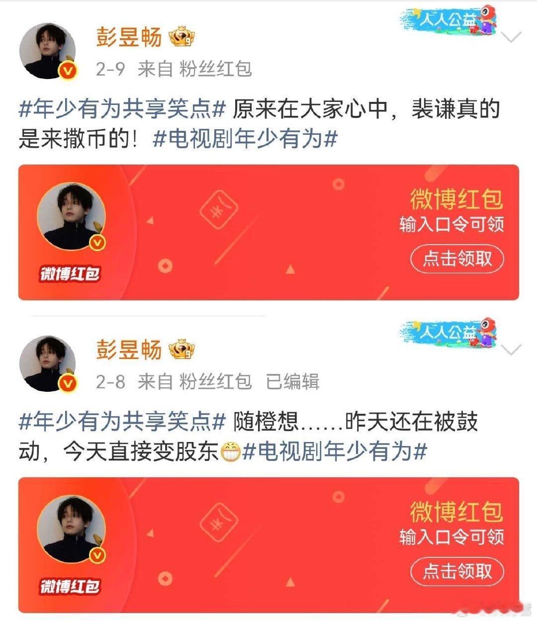 彭昱畅剧宣连发13天万元红包 新春茶话会 彭昱畅的剧宣方式好特别,连发13天万元红包,跟着裴总追剧太有奔头了!