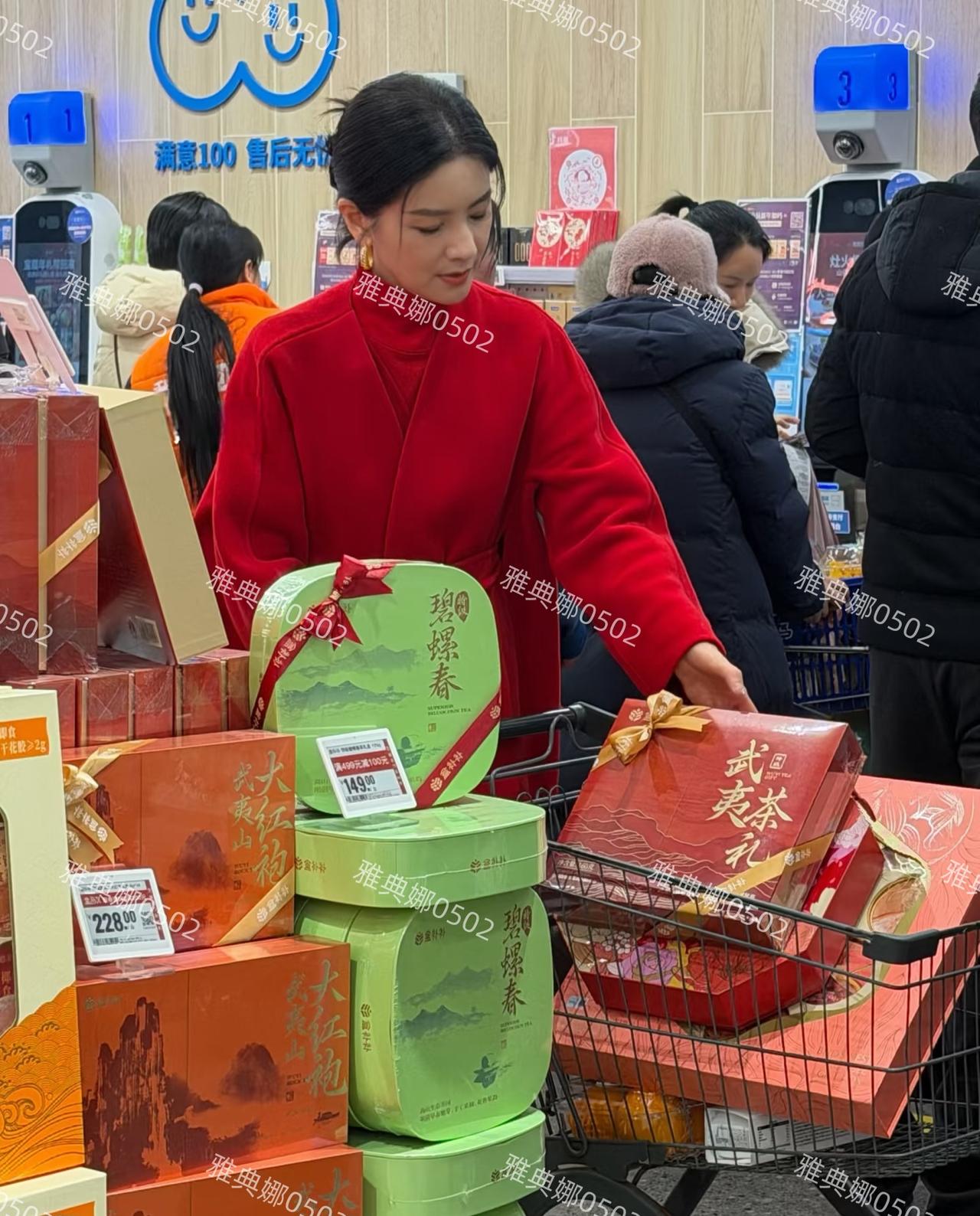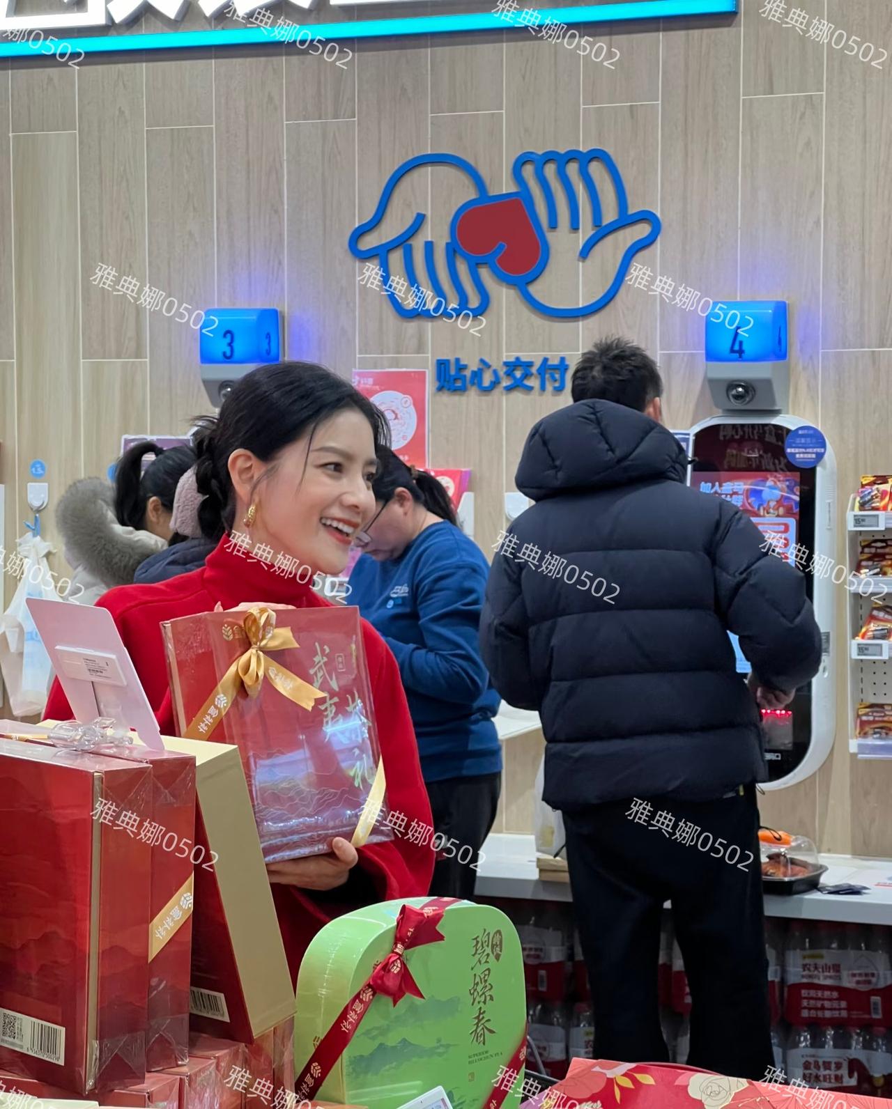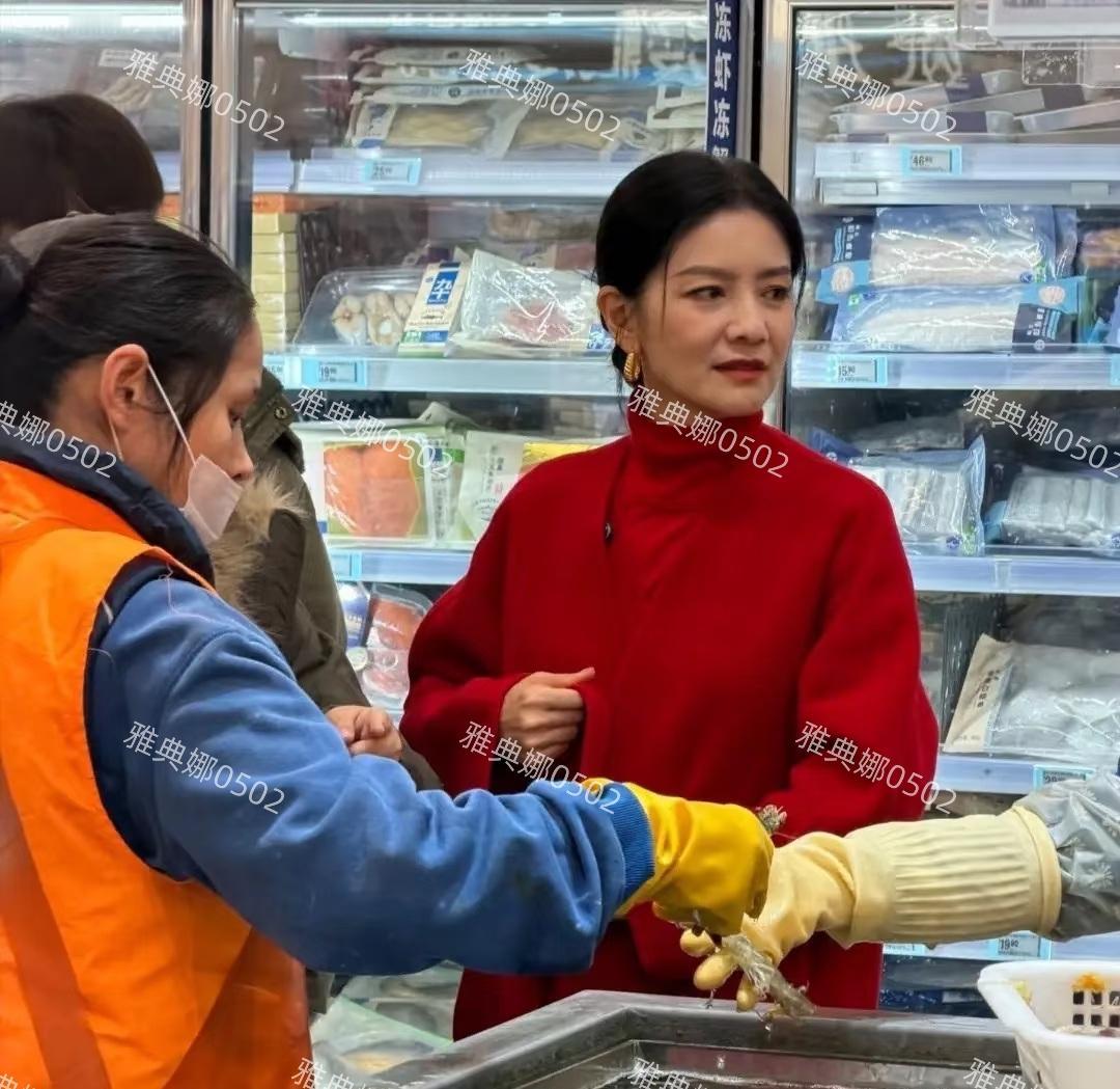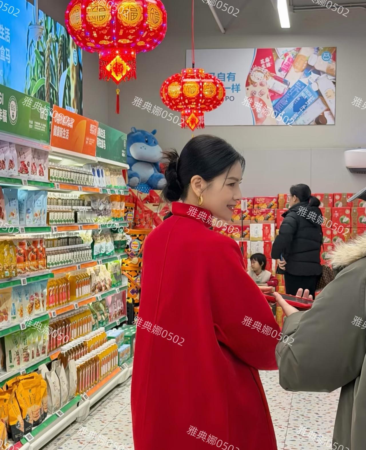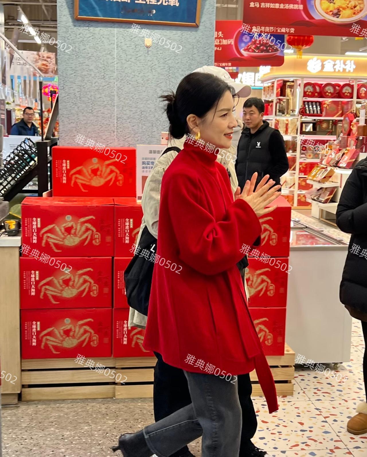 沙溢的老婆胡可本人可真漂亮,她都50岁了真人又瘦又美又年轻,脸上没有一丝科技痕迹,特别自然耐看。 在北京世贸天阶的盒马超市遇到她,她穿了大红色的羊绒衫和大衣,整个人气色特别好,很喜气很有过年气氛,她购物车里装的都是零食,酸奶和各种过年的礼盒,开始以为她是在搞直播录节目她,后来发现她并没有带麦克风,然后推着一车东西到自助收款台结账。