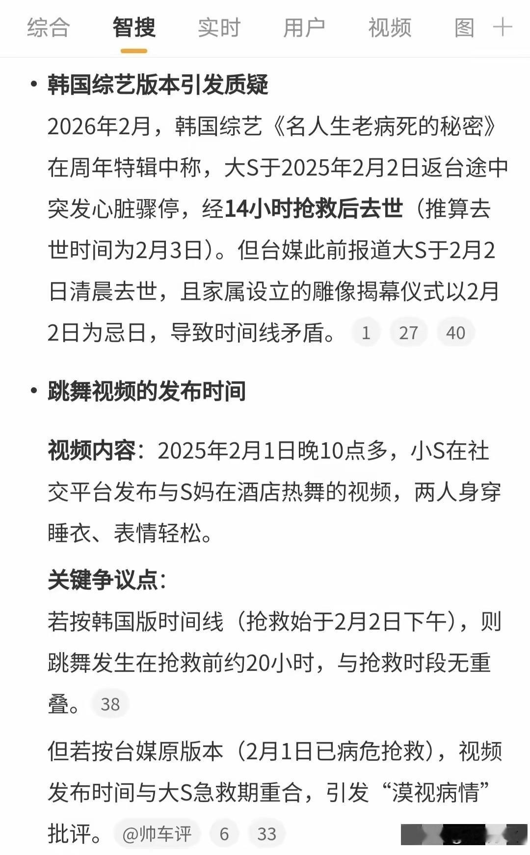 越来越多的证据显示,具俊晔就是在为S一家洗白,S一家维护具俊晔也就不足为奇了。 具俊晔在综艺中把大S的死甩锅为她的任性外,也把大S真正的死亡时间篡改了。 汪小菲2月2日上午和S妈联系,那时S妈回复的信息显示,大S已经不在了。 但具俊晔给综艺的时间却是,2号去机场路上突然大病,然后抢救了14个小时,最终不治而亡,与S妈说的时间不吻合。 具俊晔为什么要篡改时间,最主要的原因就是,1号深夜,S妈和小S还在房间热舞,那时大S却在生死线徘徊,母女俩严重失职。现在具俊晔把时间改了,S妈和小S就没有责任了。 作为交换,母女俩同意具俊晔把大S的隐私搬上电视,助力具俊晔在韩国翻红。只有这样,才能解释S一家的反常行为。
