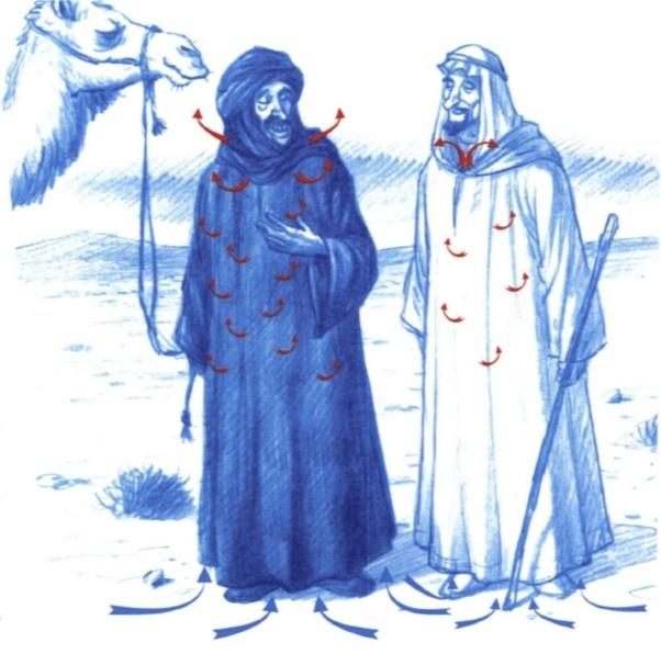 《沙漠里40℃,他们却穿一身黑?贝都因人用千年经验打了我们的脸》 很多人一看到沙漠里的贝都因人,第一反应都是一句话: 这不热死吗? 大太阳、40多度、黄沙漫天,他们却裹着又长又宽的黑袍。 而我们从小被教育的是: 天热要穿白的,深色更吸热。 那问题来了—— 是现代人懂科学,还是沙漠里活了几千年的人更懂生存? 答案可能让你有点不舒服: 他们比我们懂得多。 没错,黑色确实更吸热。 太阳照下来,每平方差不多1000瓦能量,黑色能吸收90%。 听起来很吓人,对吧? 但很多人只记住了“吸热”,却忘了另一半: 吸得多,也散得快。 物理学有个定律: 好的吸收体,往往也是好的散热体。 黑色布料,反而更容易把热量往外“吐”。 更关键的是—— 贝都因人的衣服,从来不是贴身的。 他们的长袍又宽又松,像一个活动帐篷。 黑色布料被太阳晒热后, 衣服和身体之间的空气被加热,上升; 下面的冷空气顺着衣摆灌进来。 结果是什么? 一个**不用插电、靠太阳驱动的“自然空调”**就形成了。 1980年,《自然》杂志还专门研究过这个现象,结论很简单: 在这种宽松结构下,黑色衣服反而比白色更有利于散热。 所以你看到的不是“作死穿搭”, 而是一套被极端环境反复验证过的生存系统。 你夏天最怕热的时候, 可能该学学是不是买件宽松的黑色衣服穿穿看。