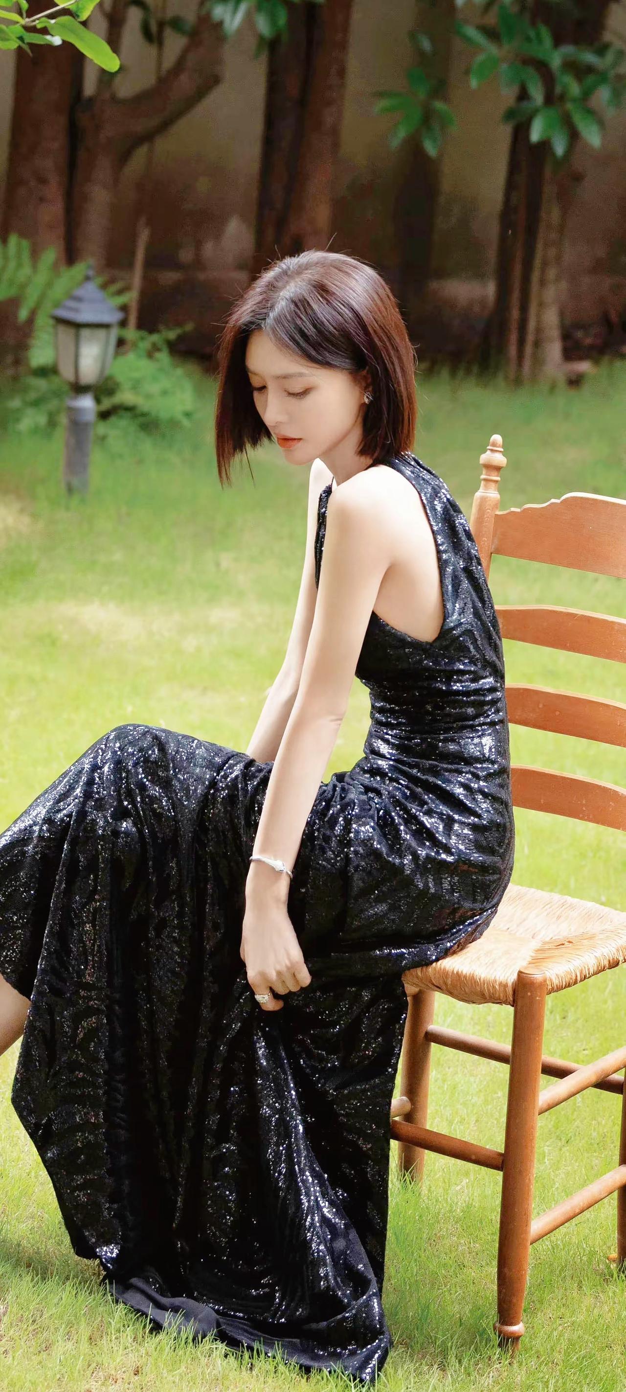 刘亦菲这次选择了一身米杏色柔纱长裙,搭配同色系印花薄纱披肩,轻盈面料自带朦胧质感