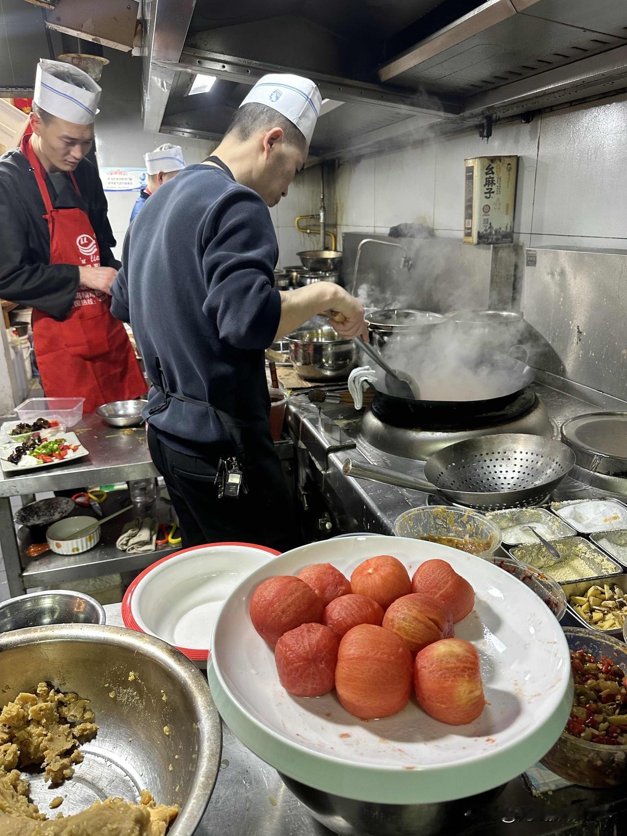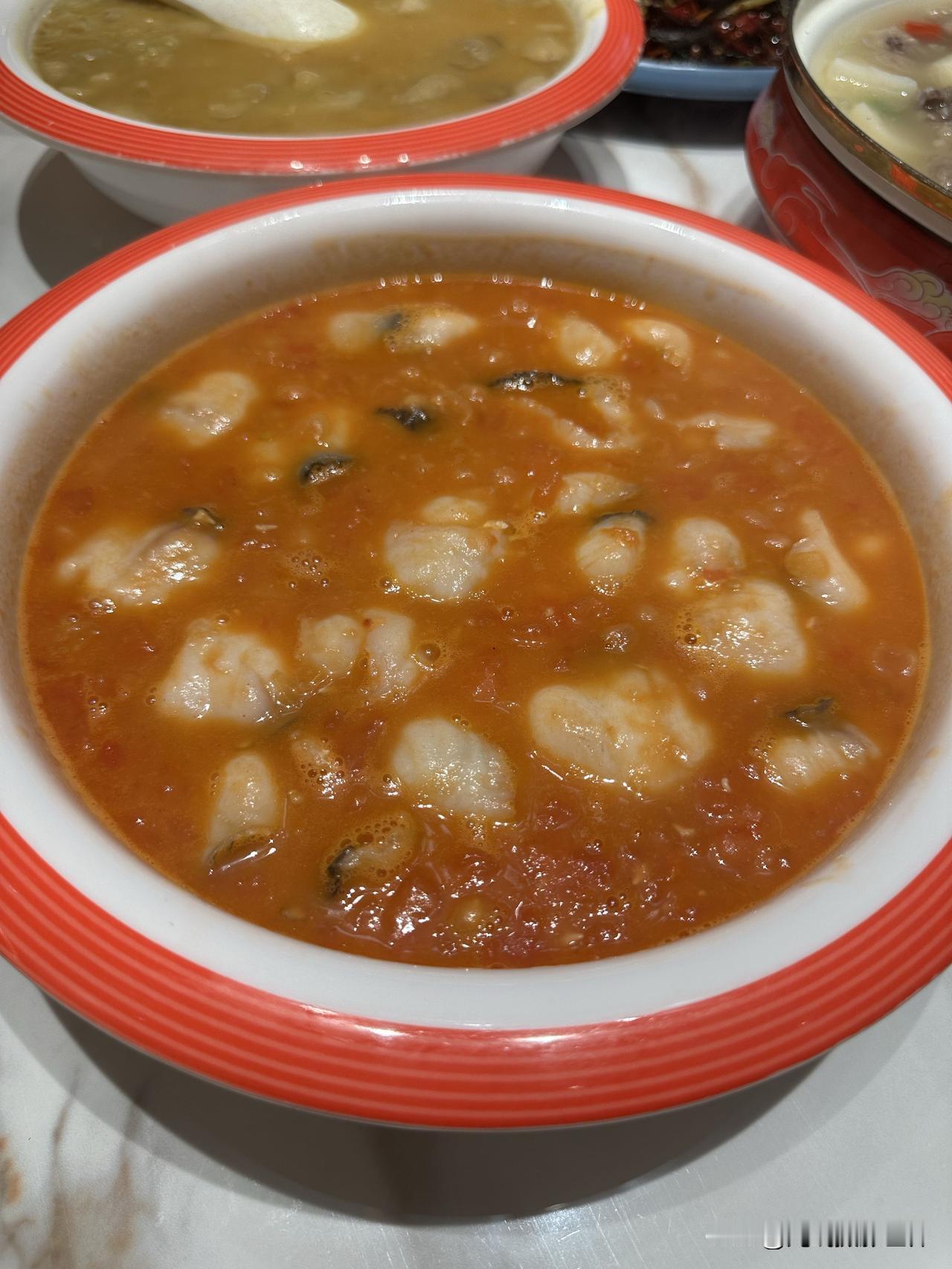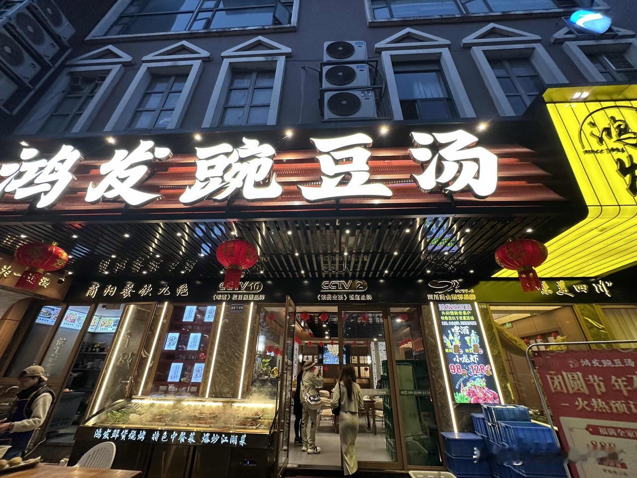 大开眼界!又吃到一个从没吃过的新菜!简阳豌豆汤,如此做法,如此这般舒服的美味,我居然是第一次知道地球上还有这么一道川菜! 2月12日晚上,我们来到四川省简阳市沱江边的“鸿发豌豆汤夜宵店蓝湖城邦店(东滨路北)”,一到店门口,我就两次惊讶!首先,远远看到巨大的“豌豆汤”店名大字,我就发现在其他地方比如说重庆,好像就没有“豌豆汤”做大字店名的餐饮店。 其次,店门口摆放了一大缸的粉豌豆,如此海量的粉豌豆,我也是第一次见到。问了问服务员,她说每天都是新鲜现做的,周末节假日还要多得多,今天这些真不算多。也就是说,简阳当地人,真的是对豌豆汤相当热爱。 再然后,店员介绍说,这个豌豆汤也是简阳九绝之一,确实是地方特色名菜,乡土气息浓郁。 为了让我更好更深地认识和感受这道地方特色美食,又高又帅的大厨师,现场现做了这道菜,而且,还给推荐最新的新菜,豌豆汤打底的番茄鱼,味道更加的鲜美。 同行的小伙伴在品尝之后,发出了感慨!真的太好吃了,味道太舒服了! 主要是不仅有地方特色,最关键是新鲜现做,是厨师亲手制作烹煮,锅气十足。 但是这家店有个问题,好像只做晚餐和夜宵,好像中午没有午餐。据说有很多晚上抵达成都天府机场的游客,一下飞机就直奔简阳市区的鸿飞豌豆汤店,吃饱喝足了再睡觉,第二天再进成都市区。 嗯,豌豆汤不是麻辣味的,这正好说明,川味,川菜,并不一定是麻辣味的。川菜里面也有很多不麻不辣的菜。光线摄影世界曾兰谈天说地 简阳有味
