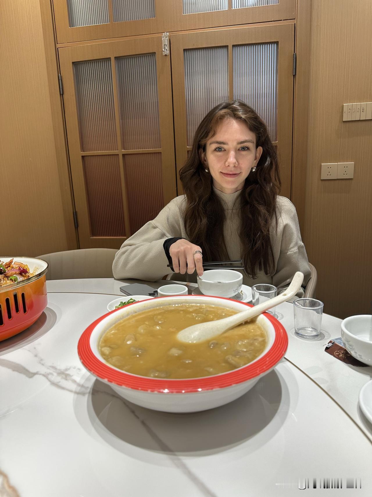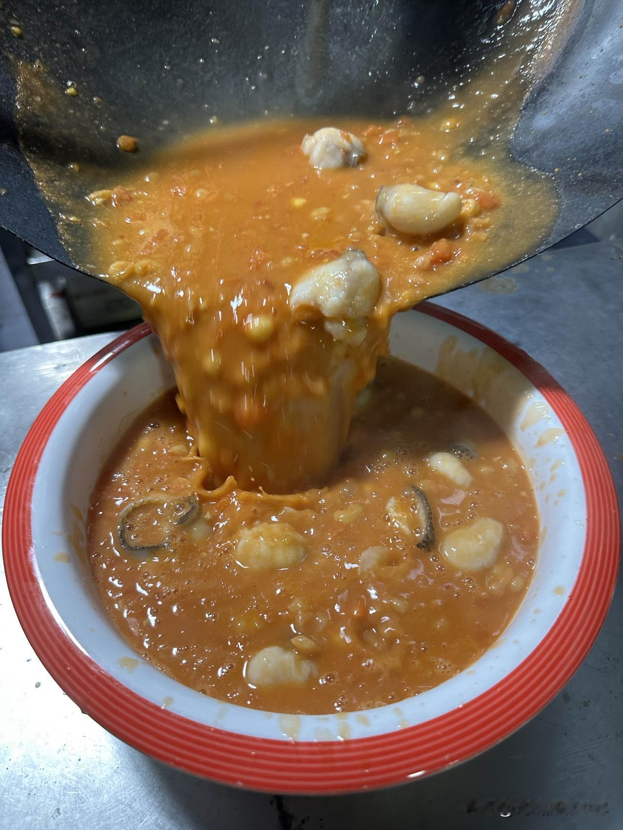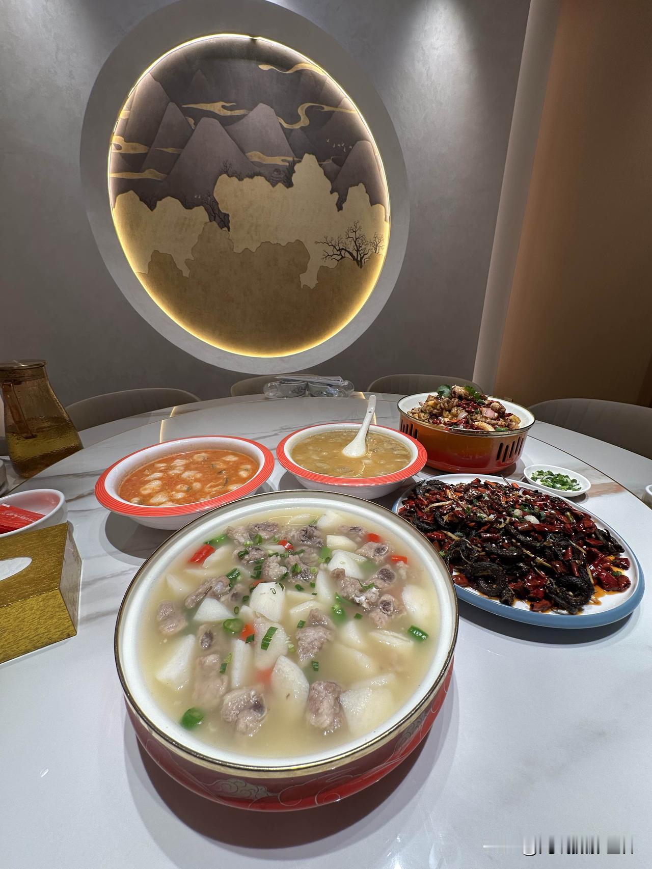 大开眼界!又吃到一个从没吃过的新菜!简阳豌豆汤,如此做法,如此这般舒服的美味,我居然是第一次知道地球上还有这么一道川菜! 2月12日晚上,我们来到四川省简阳市沱江边的“鸿发豌豆汤夜宵店蓝湖城邦店(东滨路北)”,一到店门口,我就两次惊讶!首先,远远看到巨大的“豌豆汤”店名大字,我就发现在其他地方比如说重庆,好像就没有“豌豆汤”做大字店名的餐饮店。 其次,店门口摆放了一大缸的粉豌豆,如此海量的粉豌豆,我也是第一次见到。问了问服务员,她说每天都是新鲜现做的,周末节假日还要多得多,今天这些真不算多。也就是说,简阳当地人,真的是对豌豆汤相当热爱。 再然后,店员介绍说,这个豌豆汤也是简阳九绝之一,确实是地方特色名菜,乡土气息浓郁。 为了让我更好更深地认识和感受这道地方特色美食,又高又帅的大厨师,现场现做了这道菜,而且,还给推荐最新的新菜,豌豆汤打底的番茄鱼,味道更加的鲜美。 同行的小伙伴在品尝之后,发出了感慨!真的太好吃了,味道太舒服了! 主要是不仅有地方特色,最关键是新鲜现做,是厨师亲手制作烹煮,锅气十足。 但是这家店有个问题,好像只做晚餐和夜宵,好像中午没有午餐。据说有很多晚上抵达成都天府机场的游客,一下飞机就直奔简阳市区的鸿飞豌豆汤店,吃饱喝足了再睡觉,第二天再进成都市区。 嗯,豌豆汤不是麻辣味的,这正好说明,川味,川菜,并不一定是麻辣味的。川菜里面也有很多不麻不辣的菜。光线摄影世界曾兰谈天说地 简阳有味