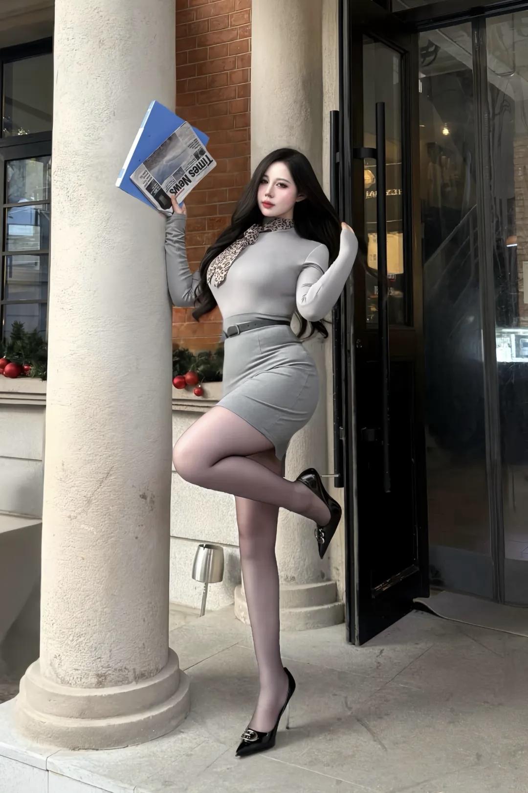 红色连衣裙搭配黑色丝袜,优雅气质满分!👗👠