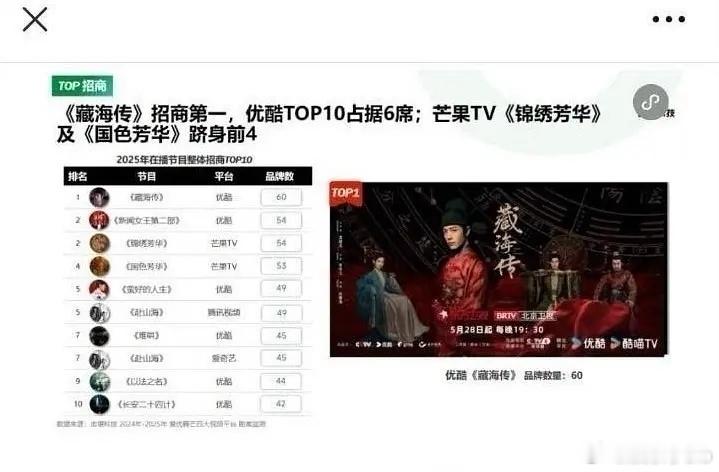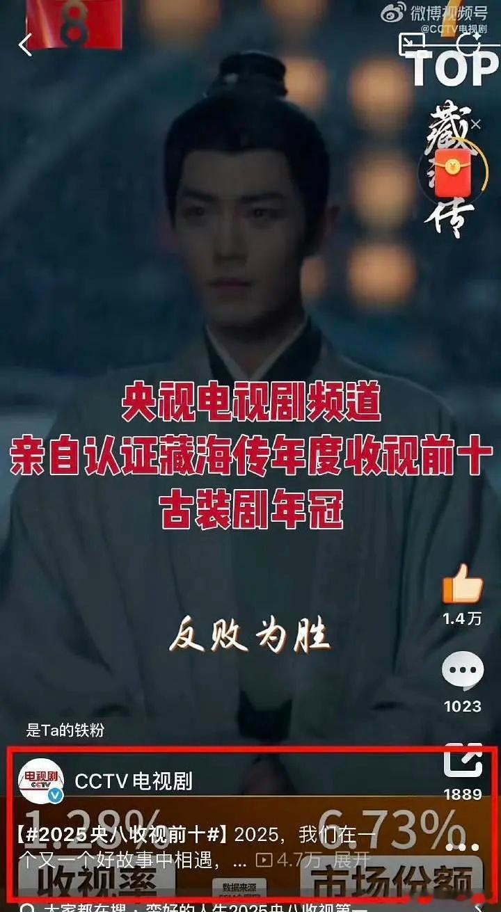 恭喜藏海传入选广电2025年鉴2025年云合,猫眼和灯塔三榜年榜大爆剧,250亿累计触达人次,全平台全电视台统一认同的击壤数据里,《藏海传》是2025年招商冠军!!!60➕品牌!!央视亲自认证的收视率排名第7,没有任何短板的真正大爆剧!!!