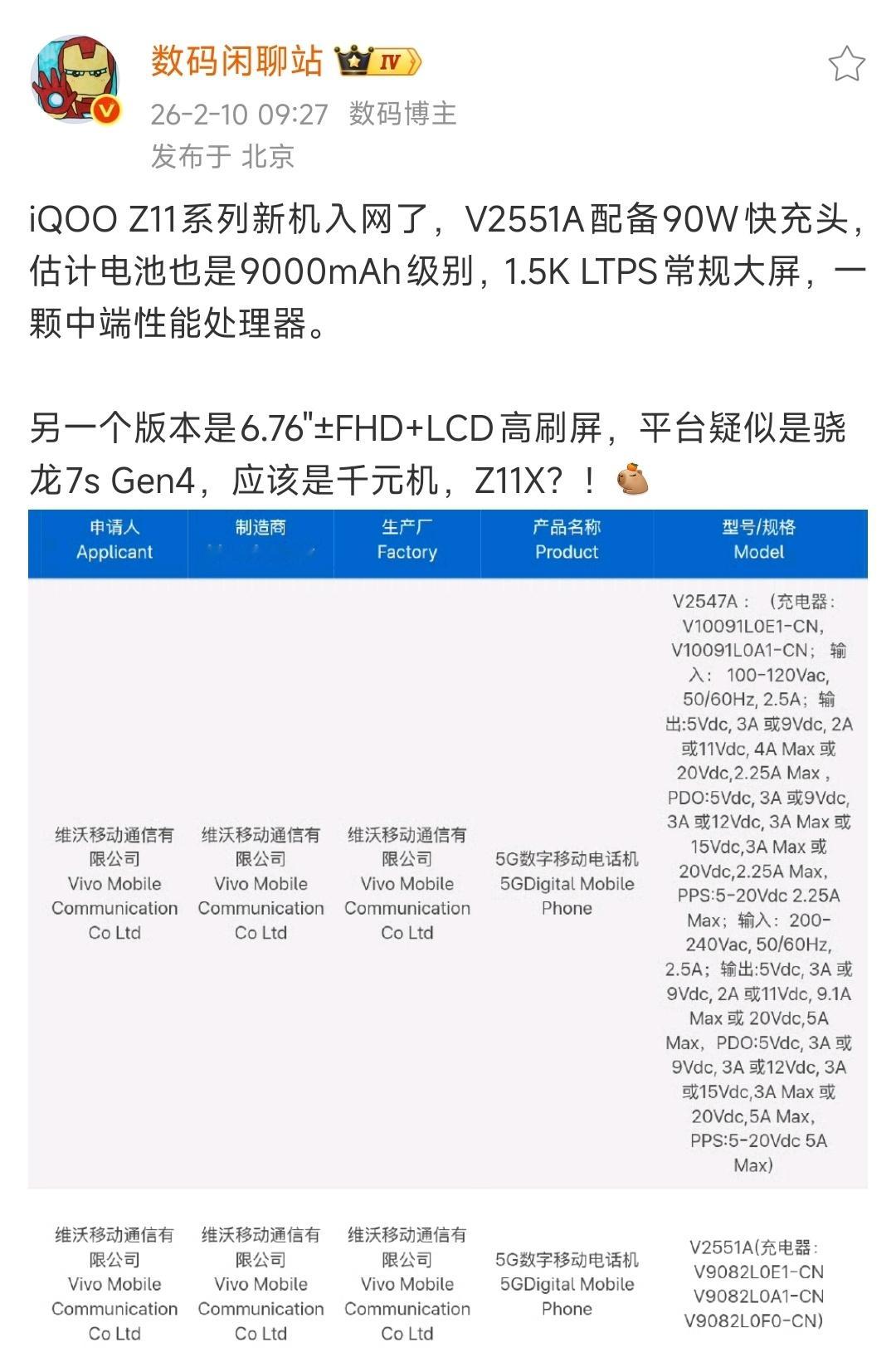 数码闲聊站 iQOO Z11系列爆料!iQOO Z11 Turbo已经发布了,这次还有iQOO Z11系列,也就是iQOO Z11和iQOO Z11x两款,大电池和快充!iQOO Z11预计搭载天玑8500,9000mAh+90w快充,iQOO Z11X预计搭载骁龙7sGen4,7400mAh+44w快充!