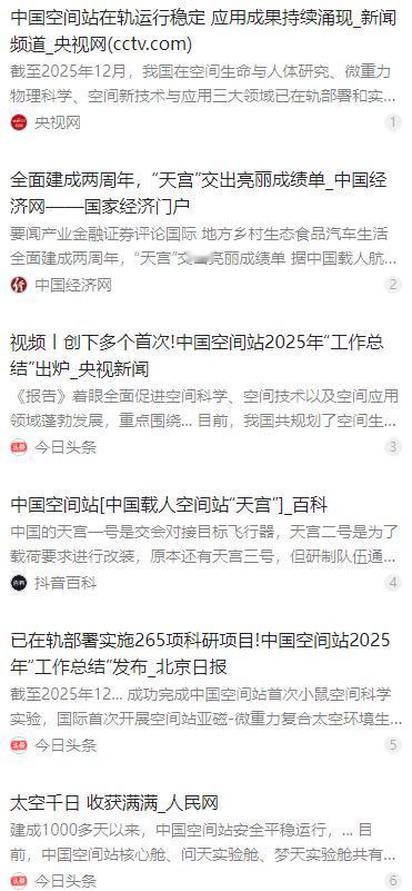 为什么大家都不提中国空间站了?没脸提,跟国际空间站差距太大,但不是中国空间站拿不出手。   麻烦看官老爷们右上角点击一下“关注”,既方便您进行讨论和分享,又能给您带来不一样的参与感,感谢您的支持!   最近几年很少有人频繁讨论中国空间站,很多人误以为是我们的空间站拿不出手,甚至觉得和国际空间站差距悬殊。事实恰恰相反,低调不是落后,而是成熟与稳定的体现,真实情况和外界猜测完全不同。   国际空间站 1998 年开始建造,到 2026 年初已在轨运行近 28 年,远超最初 15 年的设计寿命。多年超期服役带来频繁故障,2022 到 2025 年间公开报道的设备异常、漏气、姿态失控等问题超过 15 起,整体状态持续下滑。   按照美俄航天机构最新共识,国际空间站将于 2030 年前后退役,最终受控坠入南太平洋尼莫点。这座由 16 个国家共建的空间站,因为多国标准不统一、协调流程复杂、运维成本高,长期面临效率偏低的问题。   中国空间站在 2022 年 11 月完成在轨建造,截至 2026 年初已稳定运行超 3 年,全程未出现重大故障。先后有 5 批航天员入驻执行任务,平台状态平稳、各项系统可靠,展现出新一代空间站的设计优势。   这份稳定背后,是中国航天数十年坚持自主创新,突破了大型组合体控制、再生生保、柔性太阳翼等关键技术。从过去的跟跑,到如今在近地轨道空间站领域实现并跑,部分技术与运营效率达到领跑水平。   和国际空间站多国协作、标准繁杂不同,中国空间站采用统一技术体系,全程自主可控。从设计、建造到日常运维,流程简洁高效,实验载荷调度更顺畅,综合使用效率更高。   截至 2026 年初,中国空间站已开展超过 200 项空间科学实验,覆盖生命科学、微重力物理、空间新技术等领域。在太空植物栽培、生物繁殖、基础物理研究等方向取得一批重要成果,实验数据持续产出。   外界很少再刻意炒作对比,是因为中国空间站早已用稳定运行、持续产出证明了实力。不频繁宣传,不是落后,而是进入常态化高效运营,不用靠热度证明价值。   从被技术封锁到自主建成空间站,从短期驻留到长期稳定运营,中国航天走出了扎实的自主之路。现在的低调,是成熟的标志,中国空间站正安静而稳健地,在太空书写属于我们的篇章。