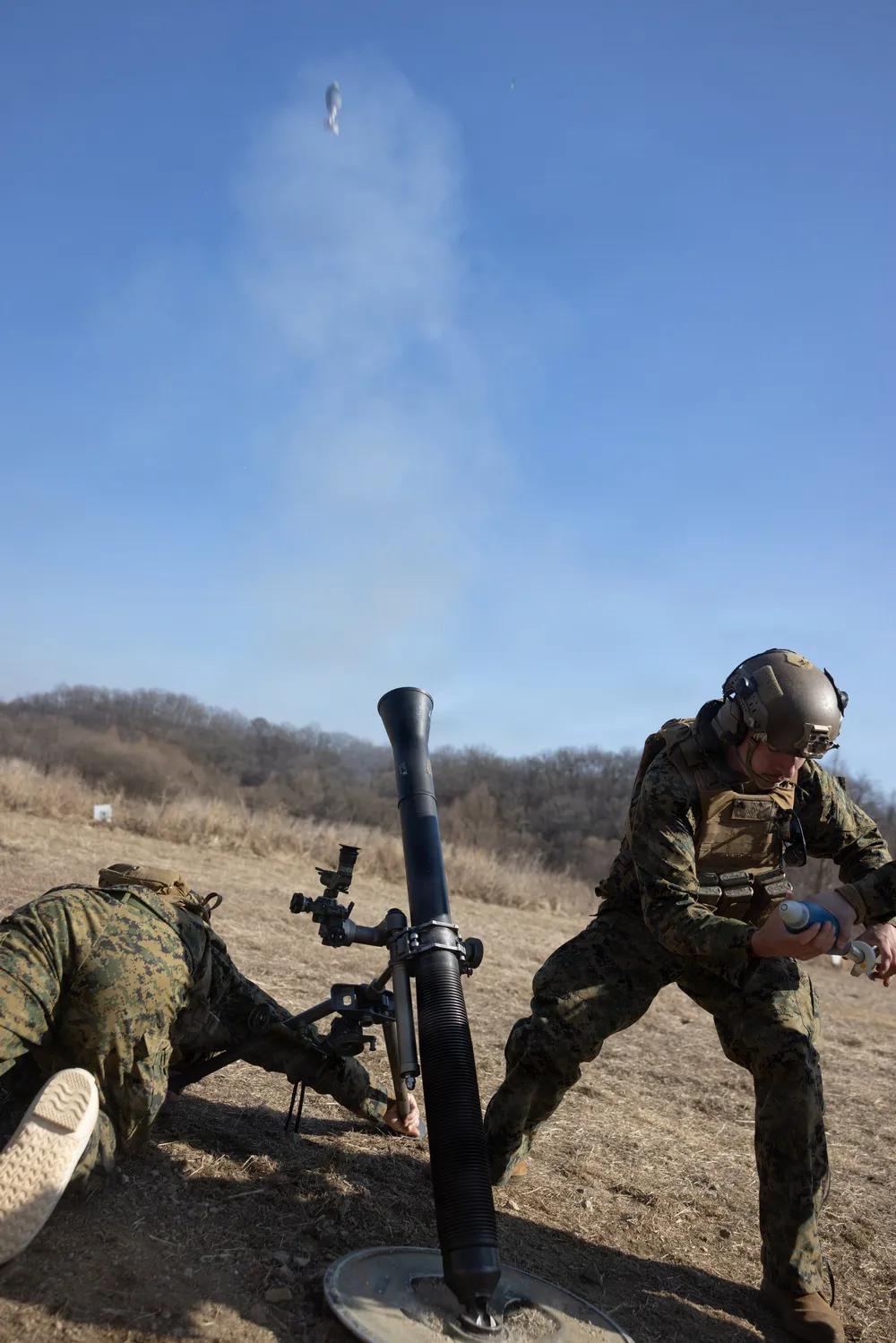 2026年2月9日,在韩国斯托里营美军海军陆战队士兵发射一枚M252 81毫米迫击炮演习。 “韩国毒蛇”是一系列反复演习,展示了韩国和美国海军陆战队作为一支统一统一力量在该地区果断应对的能力,同时加强两国盟友之间的关系和信任。