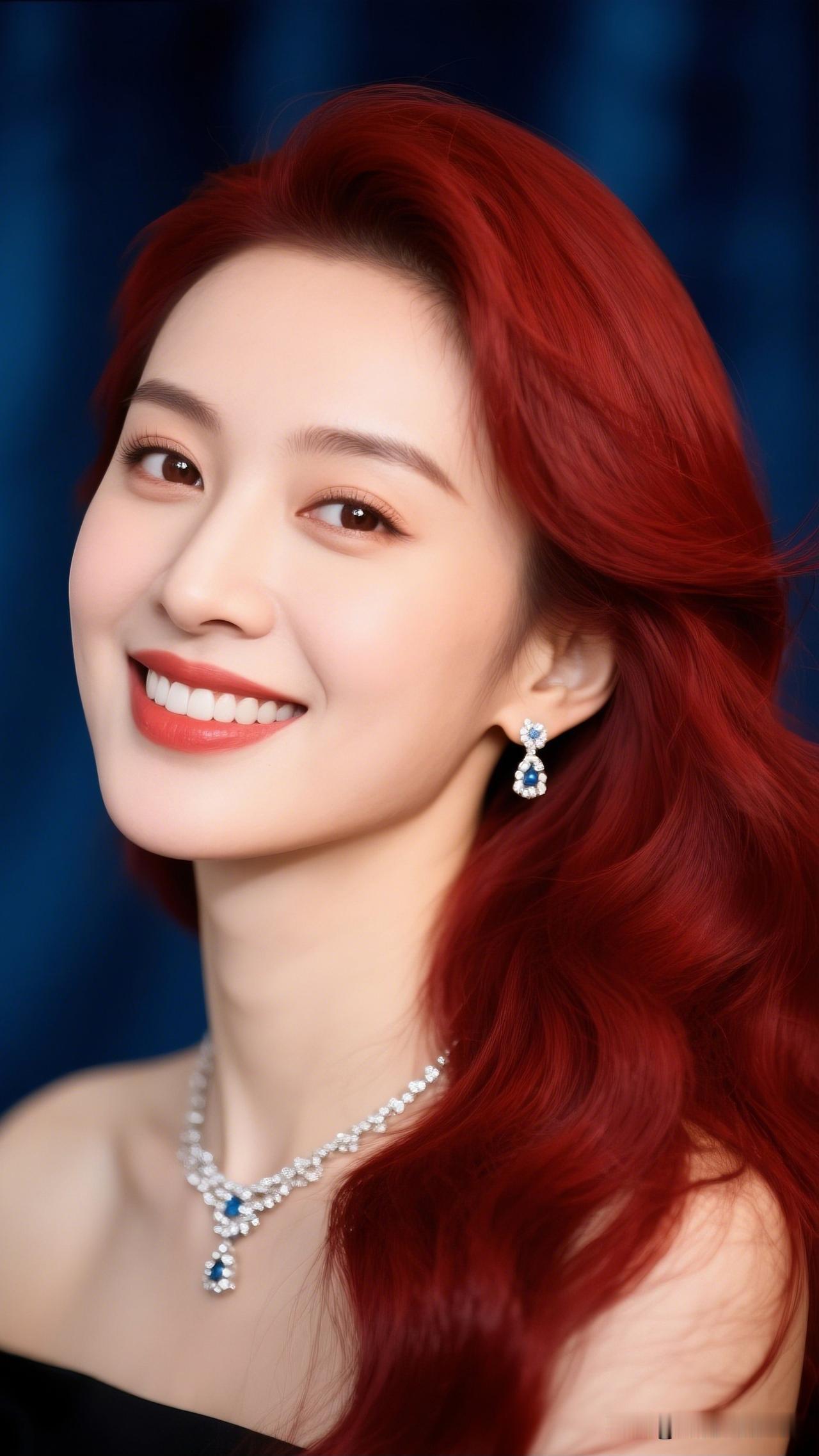 红发美女的迷人微笑,闪耀的珠宝点缀,尽显优雅与魅力!💄✨照片记录眼中的美