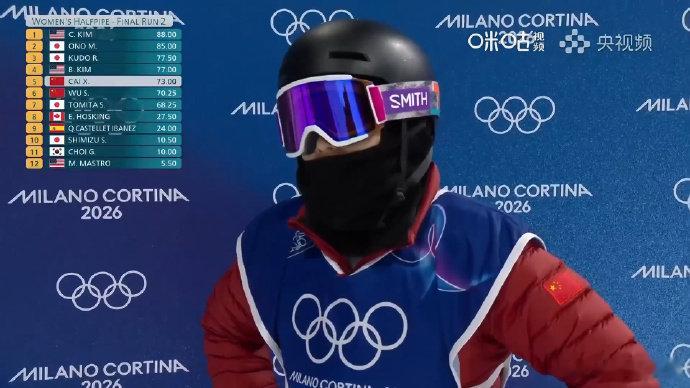 米兰冬奥会单板滑雪女子U型场地技巧,🇨🇳蔡雪桐,第二滑成绩:80.75,暂列第3。
