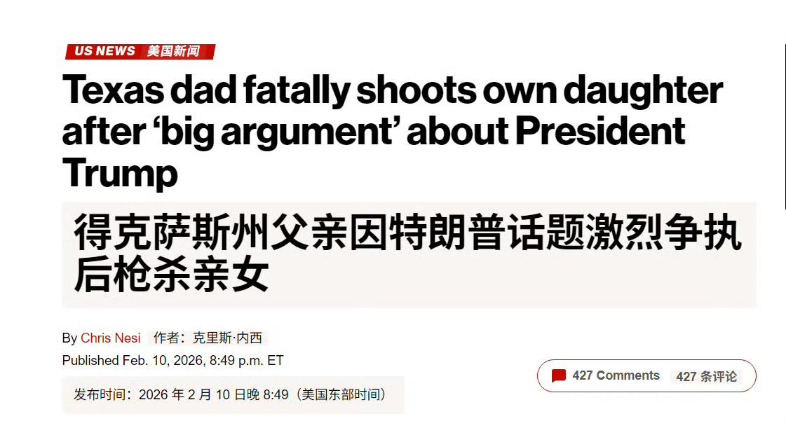 得克萨斯州父亲克里斯因特朗普话题激烈争执后枪杀亲女,这是为了政治正确大义灭亲呀!受害女子被确认为来自英国沃灵顿的23岁女子露西。 露西与男友前往得州,在父亲家中聊起特朗普,其中关于性侵的话题引发不愉快。 男友亲眼目睹女友被他父亲以一种“神秘的”方式牵起手,把她带到他的卧室,那里放着一把格洛克9毫米手枪。大约15秒后,他听到一声巨响,起初他以为这只是个玩笑。 这个不认罪,只认枪走火。验尸官的鉴定,他是一个酗酒者,他用枪指着自己的女儿并扣动了扳机。 奇葩的警方最终未对其提起刑事指控。牢A又赢一局。