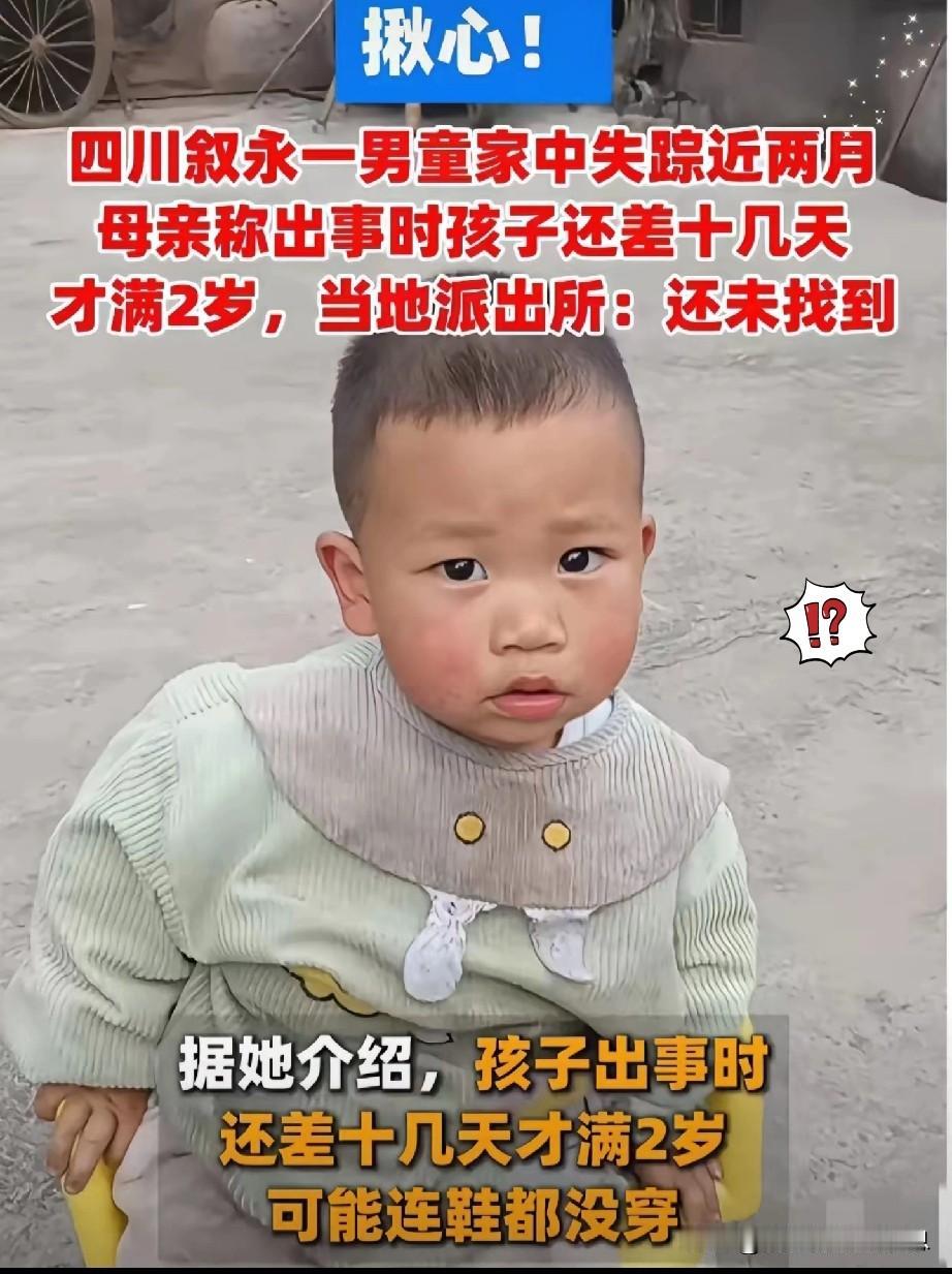 四川泸州两岁男孩罗锦程消失已140多天。 两岁多的男孩罗锦程,消失在四川泸州老家,当天,罗锦程的外婆出门砍竹子,外公在二楼换灯泡,家里只剩下小程程和老伴。 这一消失就是140多天,家里的手机、鞋子都没带出,监控显示来往车辆和行人正常,没发现可疑人影。 令人匪夷所思的是,程程在家里的手机流量,在2点15分时突然停了,这也让家人怀疑,是熟人来家里带走的。失踪当天,孩子母亲在浙江上班,接到消息后立马回到泸州,悬赏10万也没找到人。 如今,家人也没找到任何有效线索,悬赏金额也提高到20万,但仍然没有进展。向社会各界寻求帮助的罗家人,心灰意冷,恳求带走孩子的人能良心发现,把孩子平安送回。 这个案件告诉我们,潜在的危险无处不在,我们要尽量避免让孩子独处。