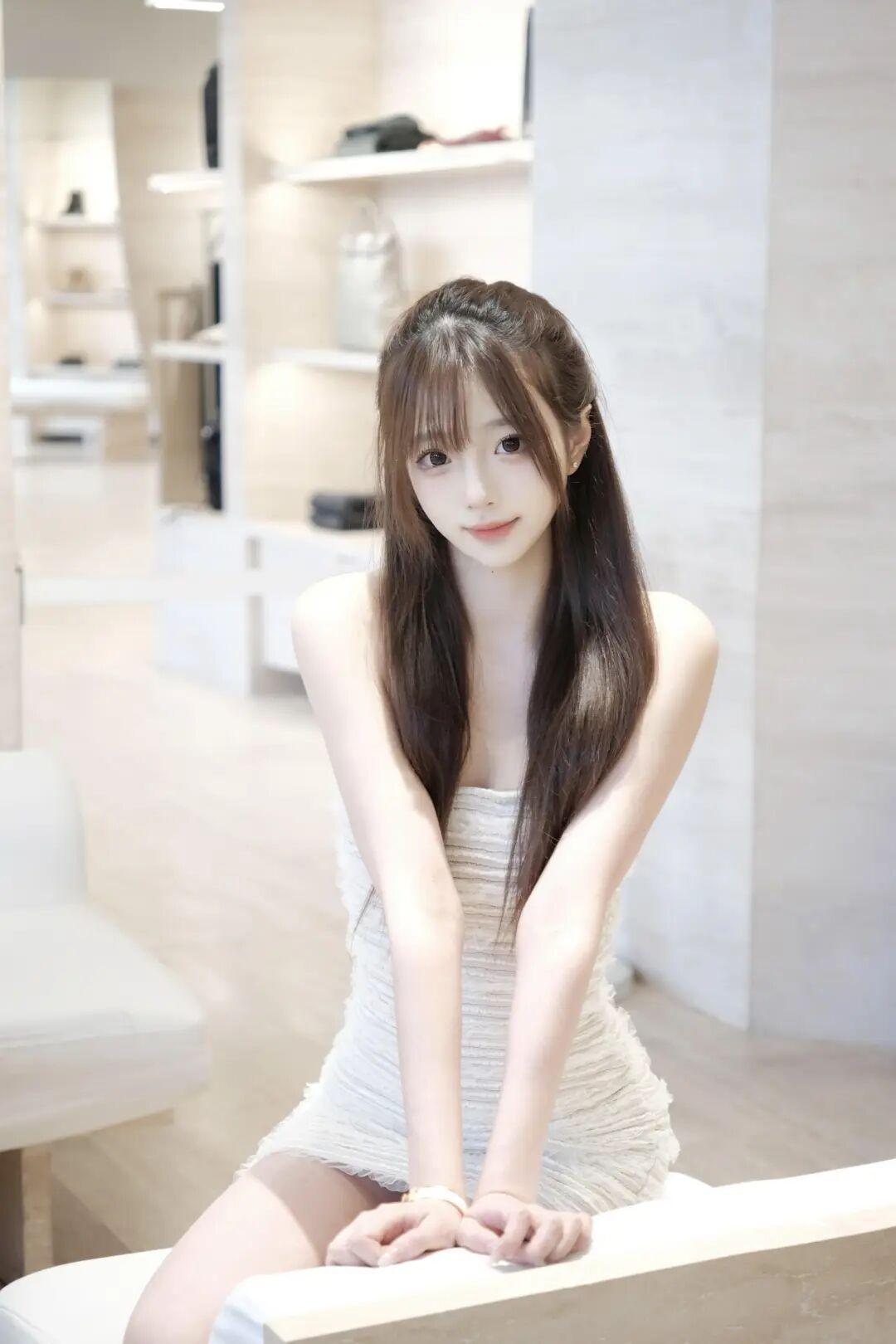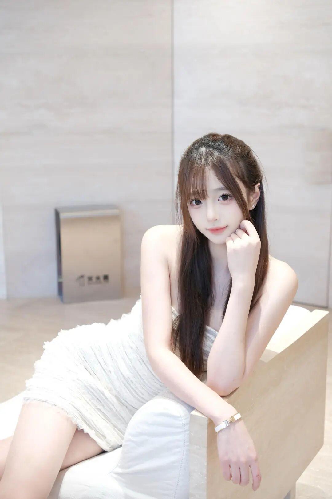 这组照片以“纯欲风室内写真”为主题,通过柔和的光线与简约的场景,展现出女性的清新与性感并存的气质。整体风格温柔而富有层次感,适合用于个人形象展示、时尚穿搭分享或社交媒体内容。 造型与细节 - 服装搭配:白色抹胸连衣裙,采用褶皱设计,贴合身形,既显瘦又增添柔美质感。裙摆长度适中,露出修长双腿,平衡了纯欲风格的尺度。 - 配饰点缀:手腕佩戴简约手镯,手指点缀精致戒指,细节处提升整体精致度。 - 妆容与发型:自然清透的妆容,突出红润唇色与明亮眼神;长发披肩,部分发丝轻柔垂落,增添慵懒与温柔感。 场景与氛围 - 背景环境:室内简约风格,浅色墙面与木质地板营造温馨氛围,背景中的白色家具与陈列品增添生活气息。 - 姿态表现:或坐或倚,姿态自然放松,眼神温柔直视镜头,传递出“不经意的美”。 风格定位与适用场景 这组照片适合用于: - 个人形象展示:展现清新自然的个人魅力。 - 时尚穿搭分享:突出简约而精致的穿搭理念。 - 社交媒体内容:传递温柔而自信的生活态度。 整体而言,这组照片通过细腻的造型与场景设计,成功诠释了“纯欲风”的美学理念,让观者感受到女性独有的柔美与自信。