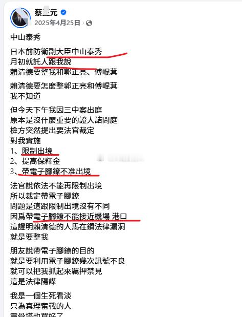 台北专家:2025年4月25日在网上发布视频,证实自己被戴上电子脚镣,不得离开台北[(图1)哼]媒体报道,“不能接近机场与港口,等同于限制出境”(图2)图6,2025年4月25日,台北专家自己证实,戴电子脚镣“不能接近机场与港口,限制出境”此后时间的台北专家,如果再说到我不想去参加阅兵、我才不想去大陆开会夸奖你们,都属于给自己脸上贴金、自我吹牛过渡没有刹住车,你连离开台北都困难,你自己可能来大陆呢台北专家本周三2026年2月11日连线三妹时,吹嘘前几天对抬绘仪“要我去”(图3),然后说自己"做不来(去参会)、不当别人嘲笑的红喇叭(图4图5)"