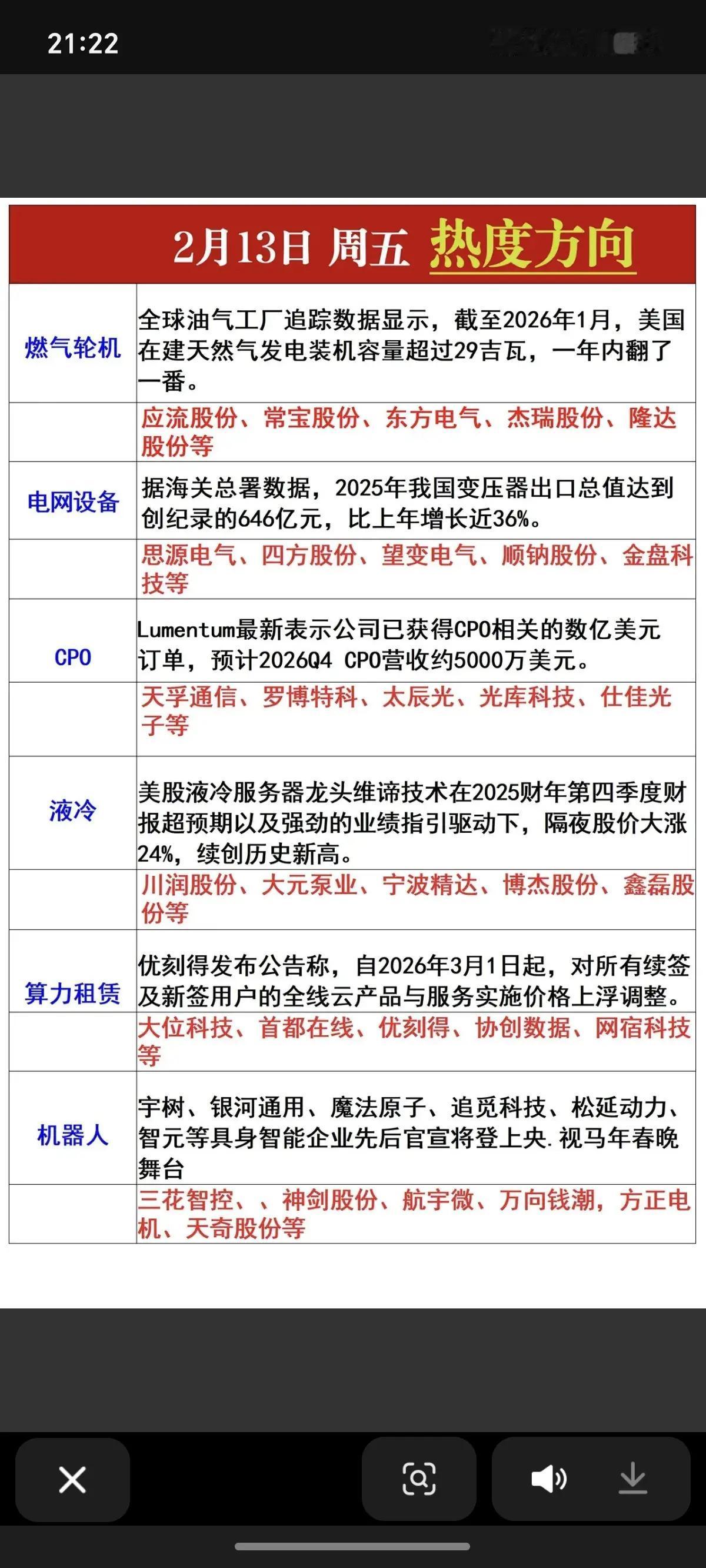 2月13日,周五A股盘前热门财经新闻一览表!!! 昨夜,美股科技股大跌,今日A股能否走出独立行情,值得期待;算力AI依然热门,今日能否延续强势,让我们拭目以待吧!!!