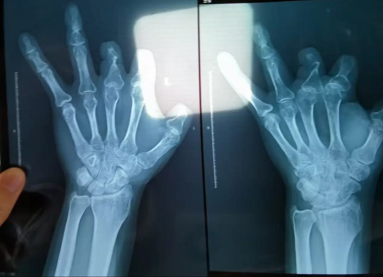 可术后恢复极差,手指还是坏死了。彭先生心生疑虑,在律师建议下拍了X光片——结果令人毛骨悚然:那6个本该留在体内的吻合器,一个都没影儿!