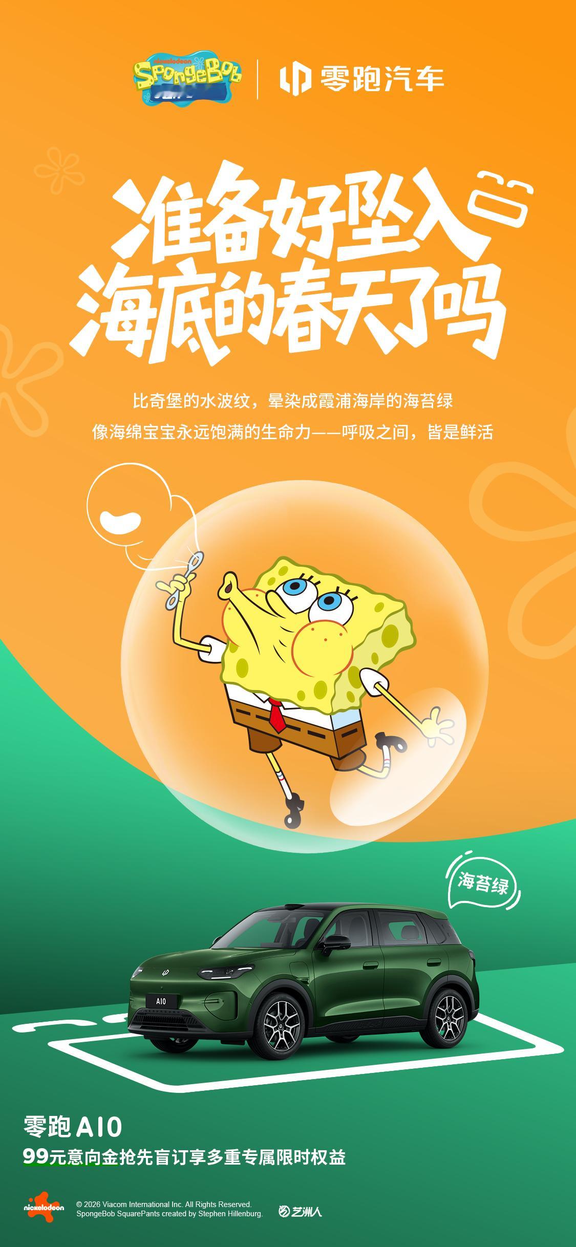 当零跑A10遇到,快乐准备出发6款车色,都藏着比奇堡的鲜活个性每一款都承包你路上的所有心情💛 如果是你,会选择哪一款颜色出发?评论区晒出你的pick,和比奇堡的小伙伴们一起探险出发~2月26日12点抽3位小伙伴,各送出海绵宝宝正版周边汽车护颈枕(24×18cm)*1 零跑A10海绵宝宝联名官宣马年放开跑 抽奖详情